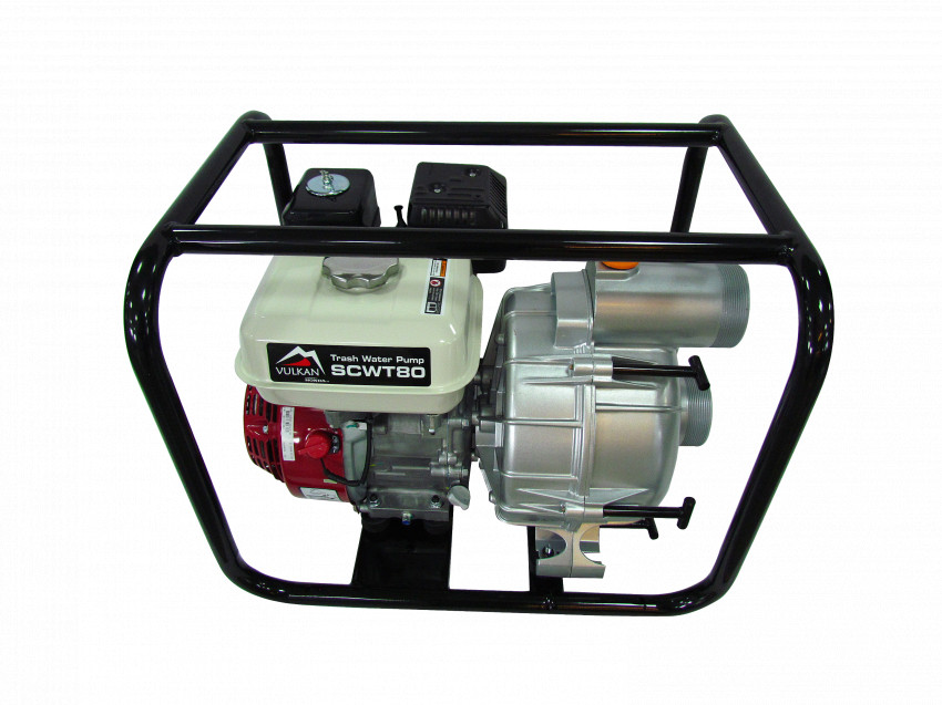 Модель Vulkan SCWT80H володіє потужним двигуном з потужністю 6,3 л.с. Максимальний натиск Vulkan Scwt80h - 26 м-кодів, а глибина всмоктування – 8 м. Мотопомпа здатна перекачувати рідини з домішками піску, мула, глини, дрібних каменів і іншого сміття.
