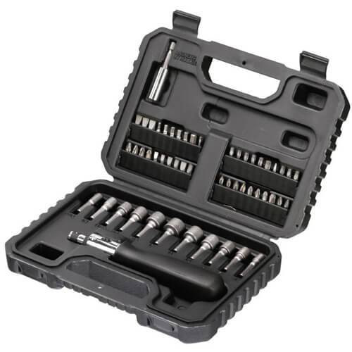 Комплектація | 53 шт. 11 гаечных насадок - 6, 7, 8, 10, 11, 13 мм, 3/16”, 1 х 1/4”, 11/350, 1 x 3/8”, 1 x 7/16”. Биты 25 мм - Ph0, Ph1, Ph2, Ph3, Pz1, Pz2, Pz3, Sl4, 5, 6, 7.2 мм, St 10, 2x15, 20, 1x25, 30, Hex 3, 2x 4, 5, 1x 6, Sq 0, 1, 2, 3. Магнитный держатель бит - |