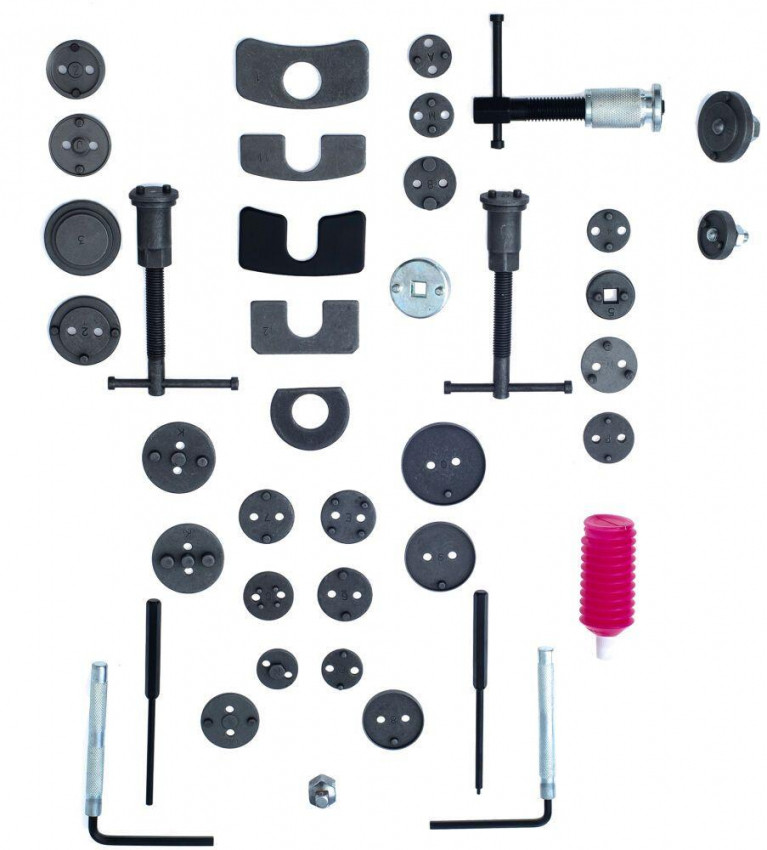 - Набір сепараторів для ручних гальмівних супортів пристосований для роботи вставних супортів (передні гальма) і гвинтових супортів (задні гальма).