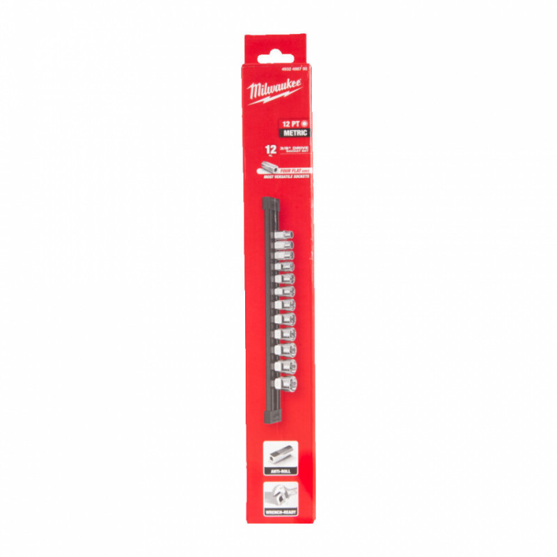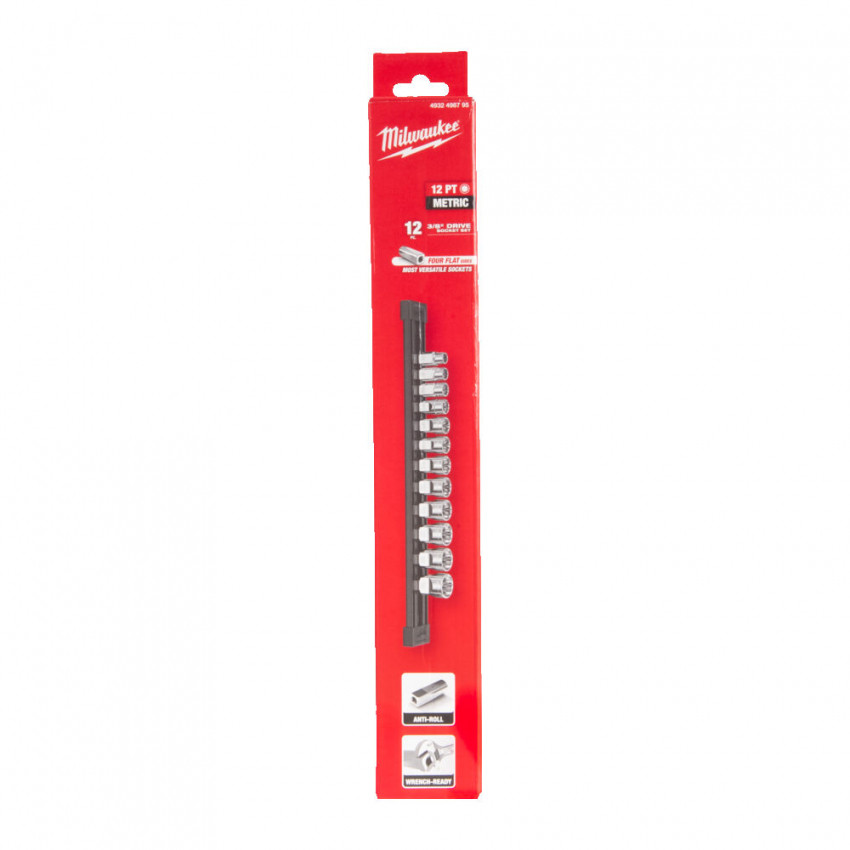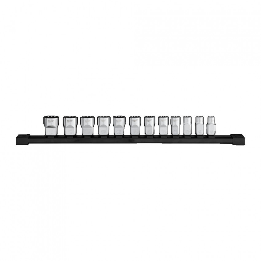 Набір головок торцевих хромованих метричних ⅜″ MILWAUKEE, (зірочка 12 гранн.), на планці (12шт)
