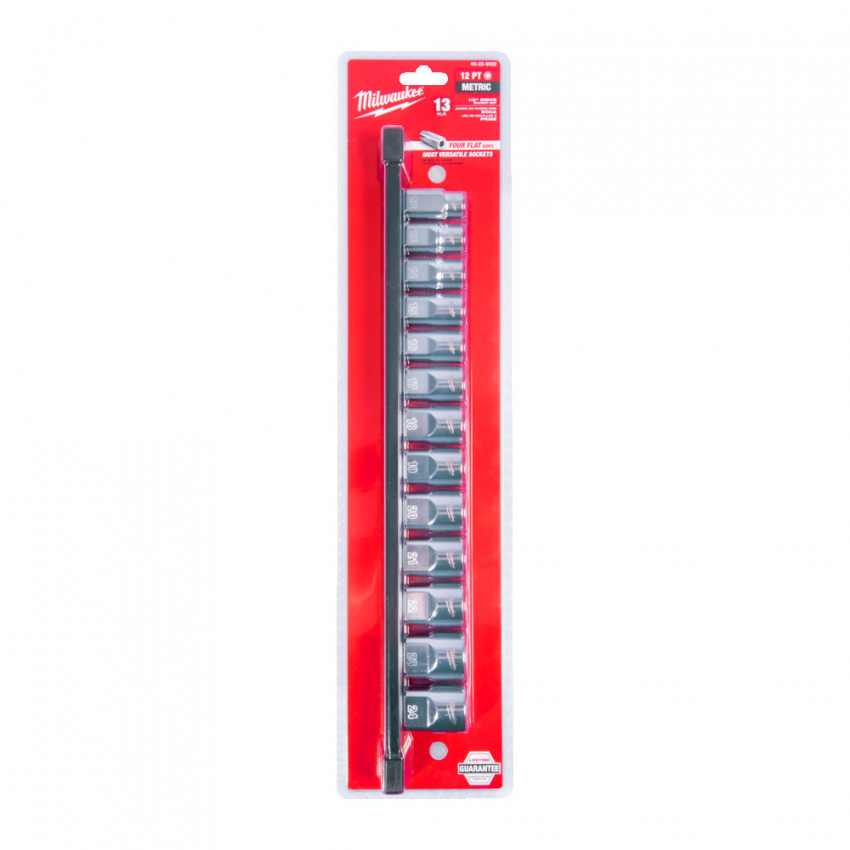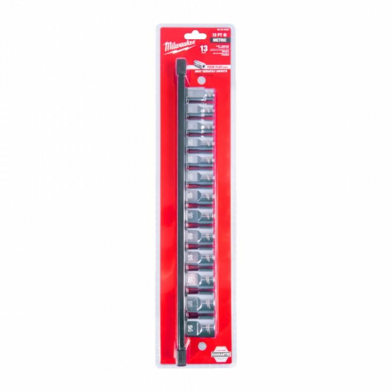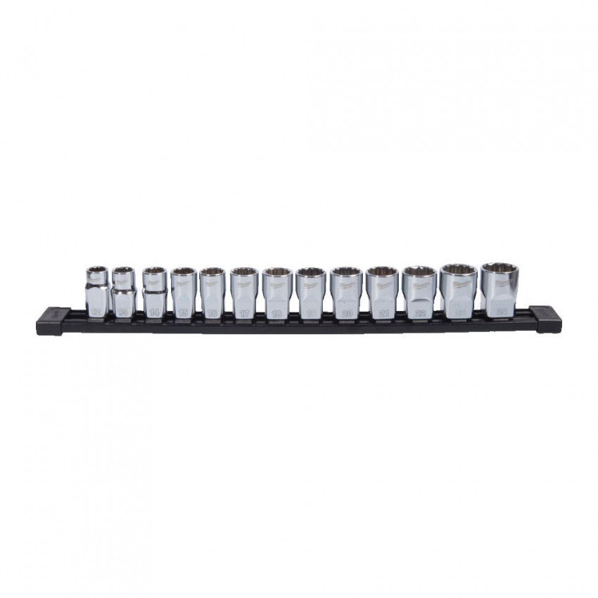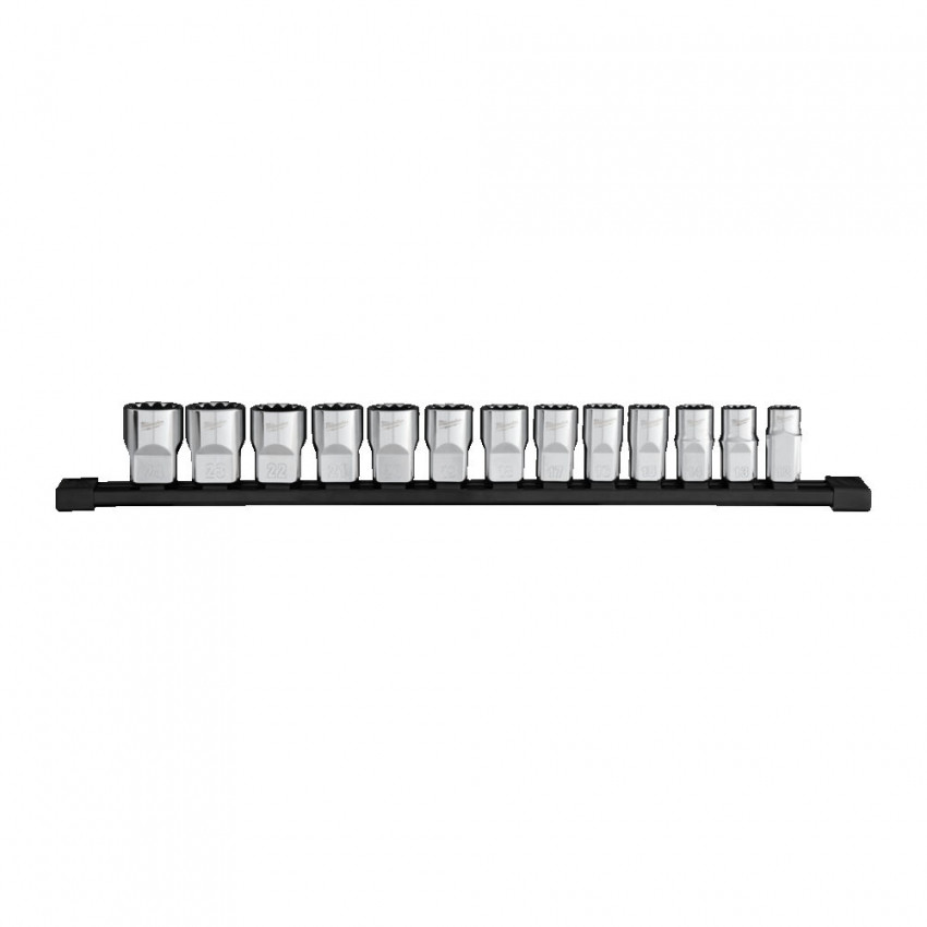 Набір головок торцевих хромованих метричних ½” MILWAUKEE, (зірочка 12 гранн.), на планці (13шт)