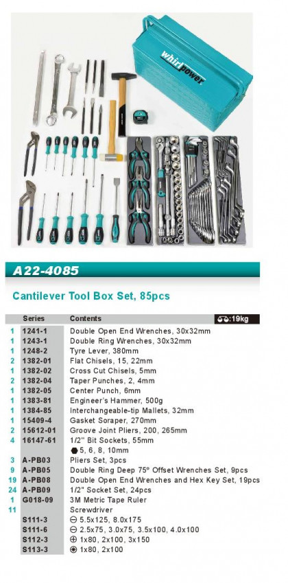Набір інструменту Whirlpower 85 од, металевий ящик: