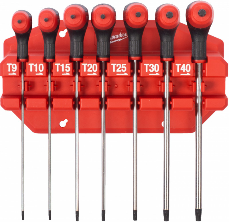 Набір ключів Г-образних MILWAUKEE з комфортною ручкою, Hex з кулькою, (7шт) (T9/T10/T15/T20/T25/T30/T40)