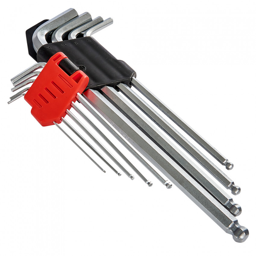 Набір ключів шестигранних з кулею подовжених 9 шт. 1,5-10 мм Vitals Master виготовлений із високоміцної сталі марки CrV, яка значно збільшує запас міцності та робочий ресурс. Покриття у ключів — хромоване.