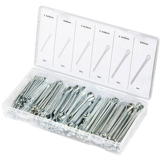 Про товар Набір шплінтів, S головки х L: 3,2х50, 4х64, 4,8х76, 6,4х25, 6,4х76, 8х64 мм, 144 items.// SIBRTECH