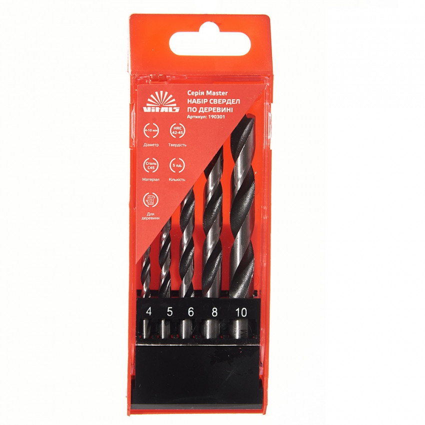 Набір свердел по деревині 5 од. 4-10 мм Vitals – це якісний та зручний набір для свердління отворів у різних дерев'яних матеріалах. Набір включає 5 свердел різного діаметра від 4 до 10 мм. Свердла виготовлені зі сталі C45, яка має високу міцність, твердість і зносостійкість. Твердість свердел становить 42-45 HRC, що гарантує тривалий термін служби та надійну роботу. Свердла по деревині мають спеціальну форму вістря, яка забезпечує чисте та акуратне свердління без сколів та тріщин. Підходять для роботи з електричними та акумуляторними дрилями. Поставляються у зручному пластиковому кейсі для зберігання та транспортування, який захищає свердла від пошкоджень та забруднень. Набір свердел по деревині 5 шт. 4-10 мм Vitals – це незамінний набір для будь-яких завдань зі свердління деревини.
