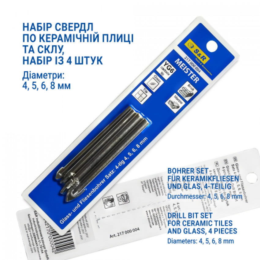 Характеристики Набір свердел по склу та кераміці S&R Meister 4 шт