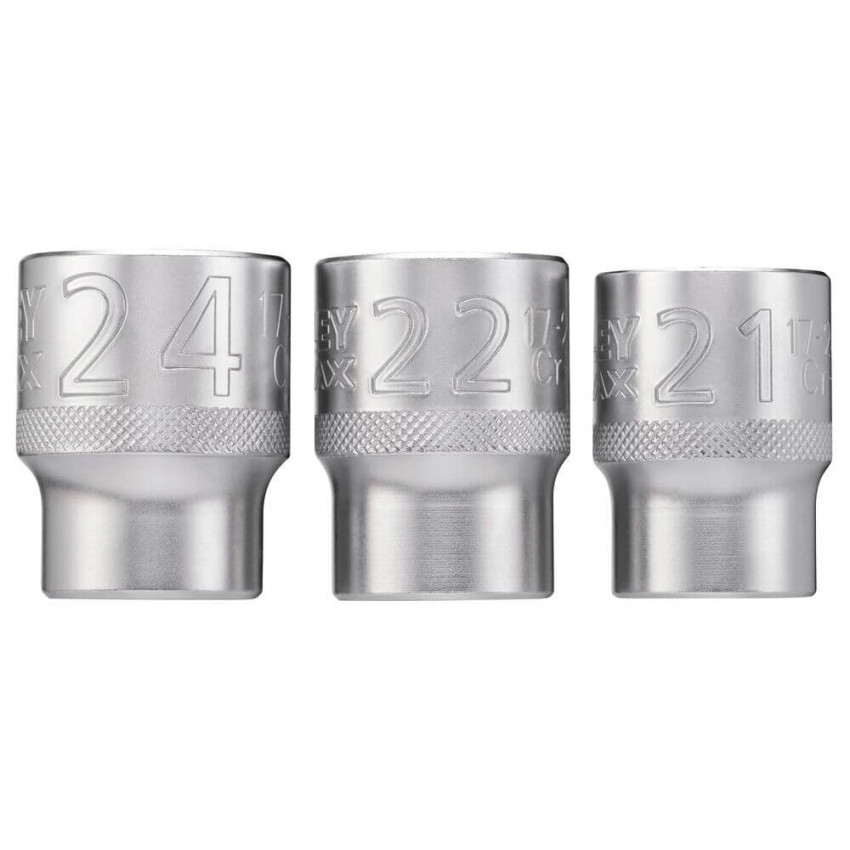 Про товар Набір торцевих головок 1/2 Maxi Drive, із шестигранним профілем, 3 шт: 21, 22 24 мм. STANLEY FMMT17095-0