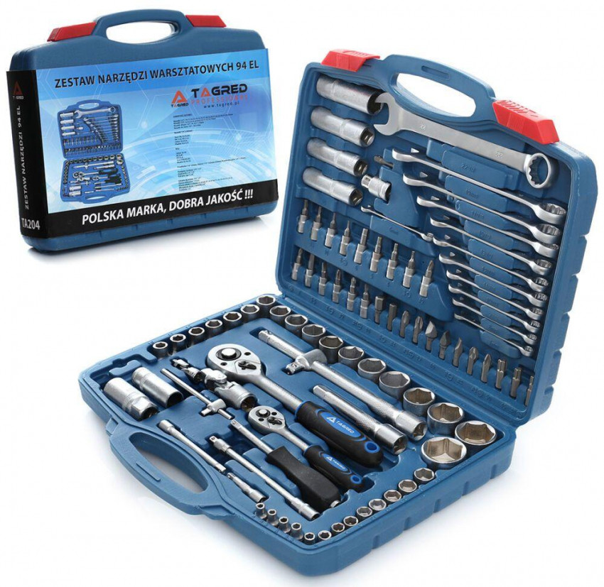 Набір торцевих ключів TAGRED TA204, 94 шт - поміщені в міцний кейс з високоякісного пластику.