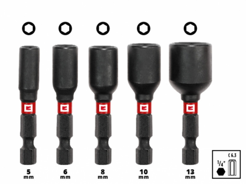 5 торцевих головок (5-13 мм) зі сталі CV з торцевим шестигранником
