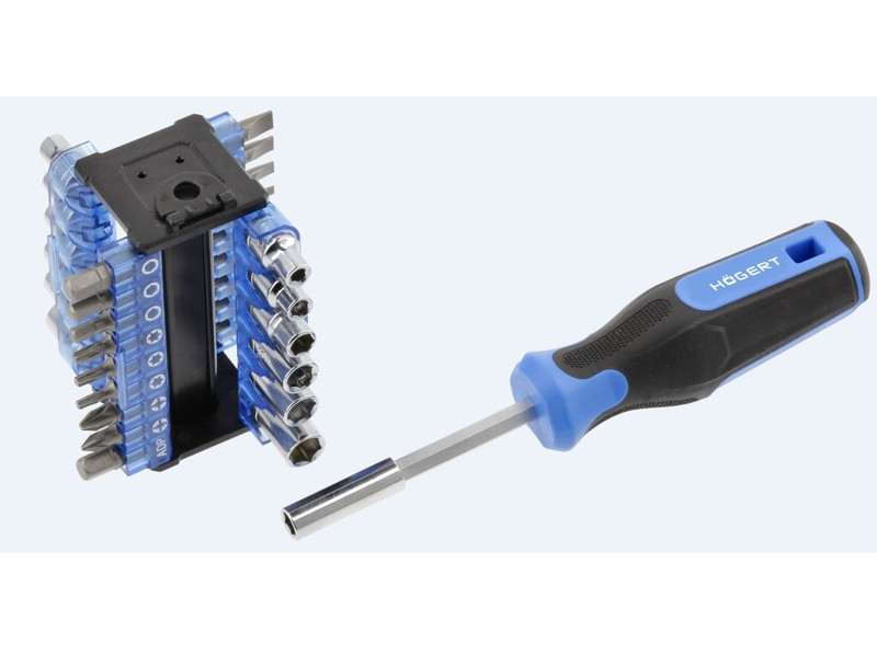 - Викрутка з набором з 26 змінних наконечників, 6 головок та перехідника.