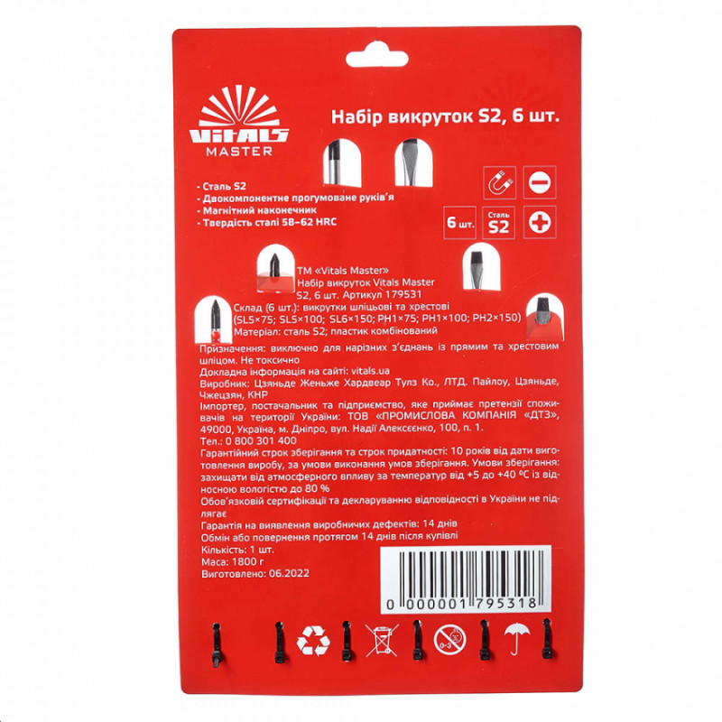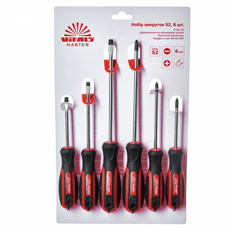 Професіональний набір викруток Vitals Master призначений для монтажу та демонтажу різьбових з'єднань з типом шліців SL6 та PH2.