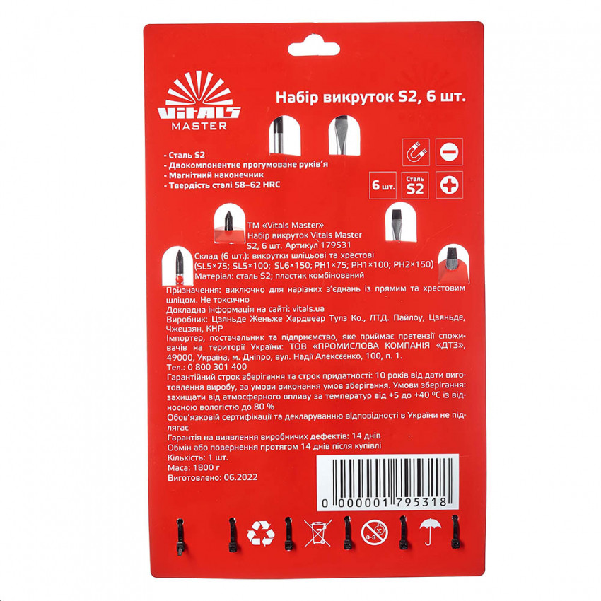 Стрижень викруток виготовлений із високоякісної міцної сталі S2, яка вважається найкращою у своєму сегменті. До складу цієї сталі входять молібден і кремній, які надають виробу високого опору до навантажень та низький поріг оборотної деформації. Також сталь S2 має високу антикорозійну стійкість.