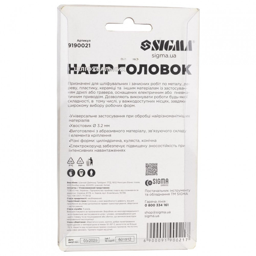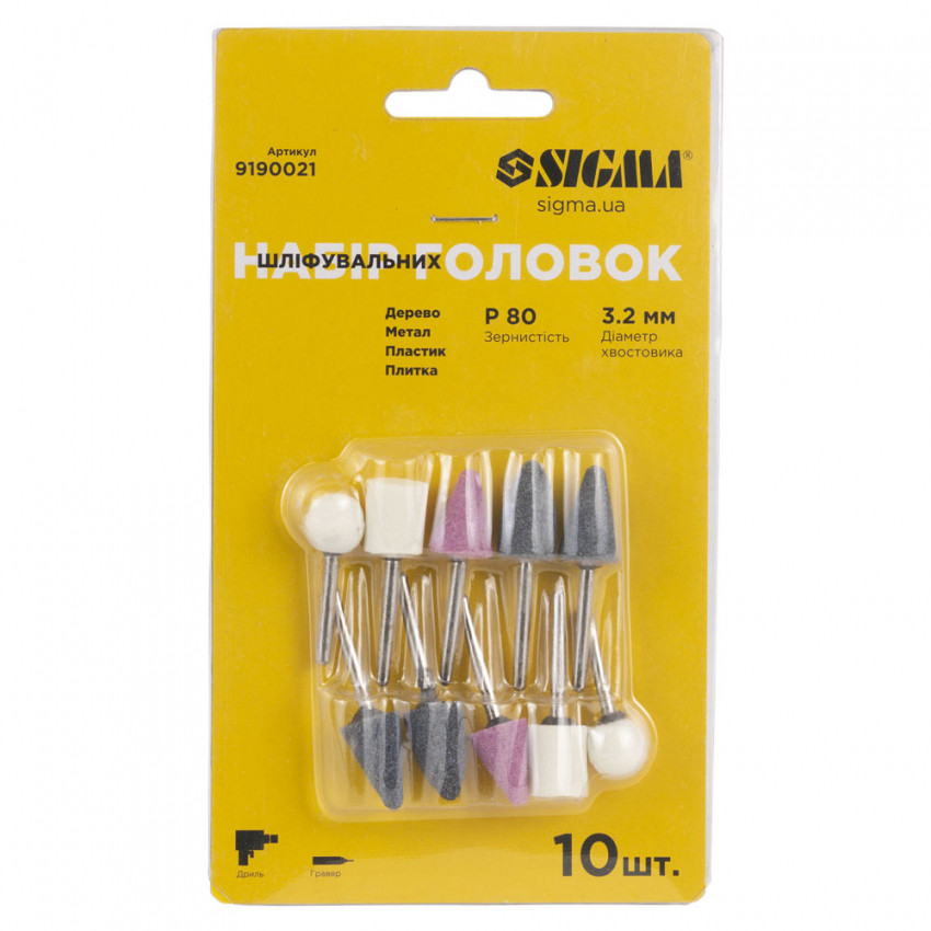 Характеристики Набір шліфувальних головок 10шт хвостовик Ø3.2мм Sigma (9190021)
