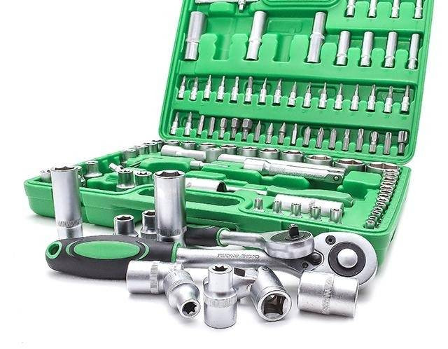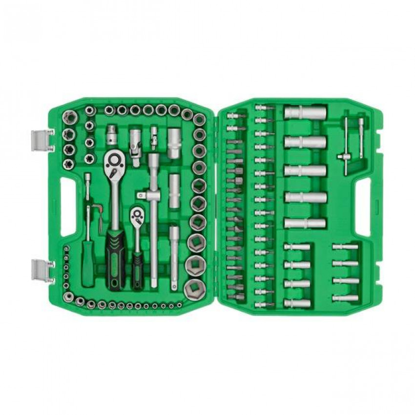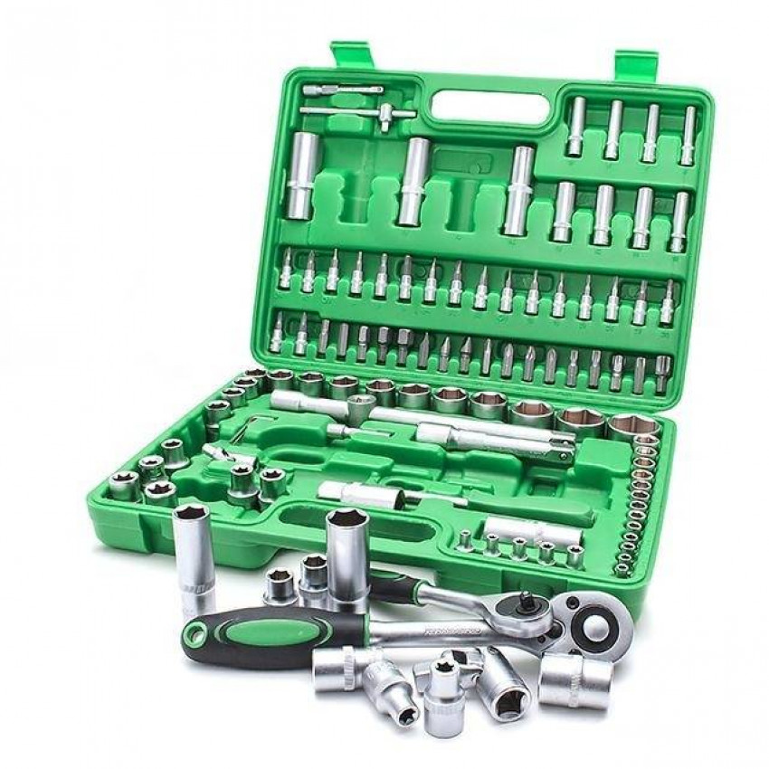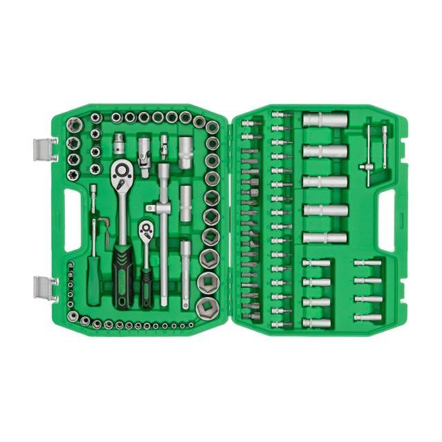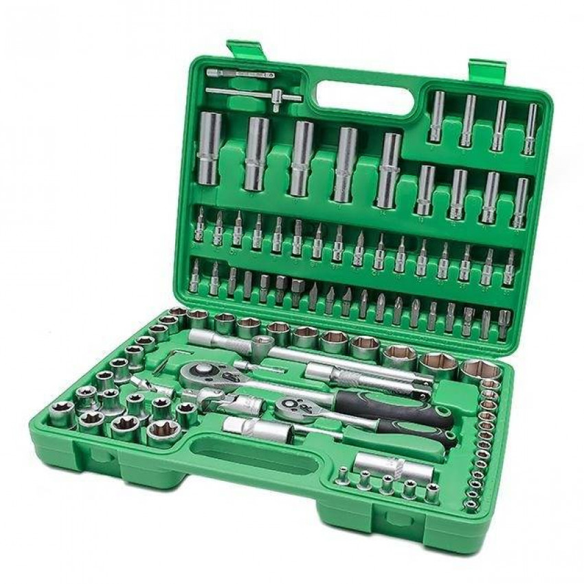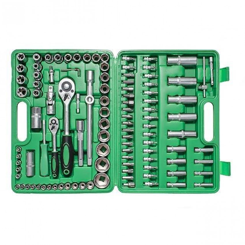 Набір включає 108 елементів для вирішення будь-якого завдання на відкручування, закручування кріплень. Різноманітність торцевих головок у наборі дозволяє виконувати переважну більшість завдань з ремонту автомобіля, а також техніки.