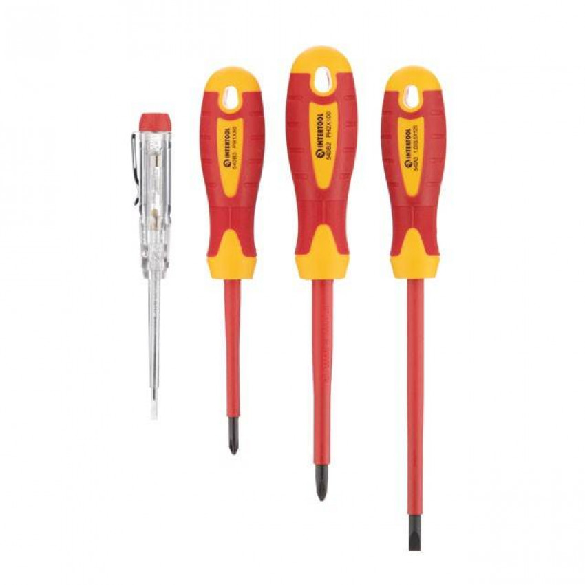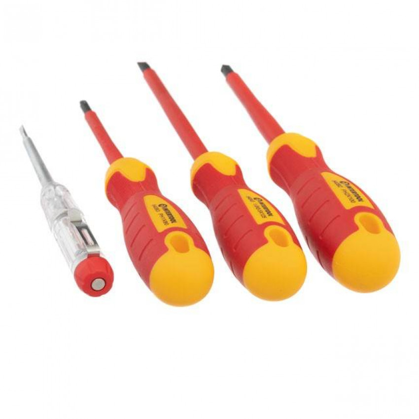 Набір діелектричних викруток призначений для електромонтажних робіт, які виконують під напругою до 1000 В. Використовується для безпечної та зручної роботи з електромережами, запобіжниками, перемикачами та різними приладами.