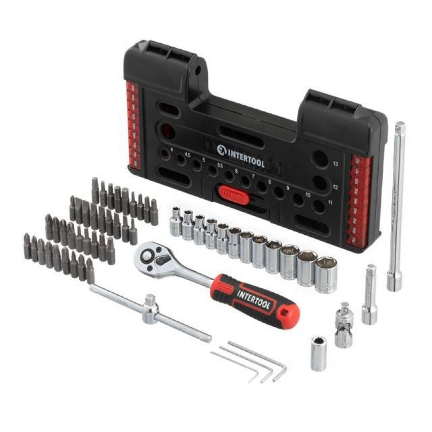 Професійний набір INTERTOOL STORM з комплектом біт, торцевих головок та воротків призначений для монтажу і демонтажу будь-яких кріплень. Виготовлений за новітніми технологіями і відповідає запитам найвибагливіших майстрів.