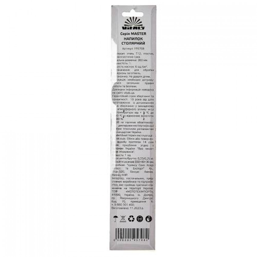 Напилок столярний плоский 200 мм Vitals Master - це інструмент для обробки дерев'яних поверхонь різної форми та складності. Він виготовлений з високоякісної сталі марки T12, яка забезпечує довговічність та міцність напилка. Форма напилка - плоска, що дозволяє обробляти плоскі та криволінійні поверхні, а також виконувати точний підгін деталей. Напилок має прогумоване руків'я TPR, яке не ковзає в руці та забезпечує комфорт та безпеку під час роботи.