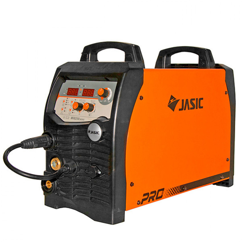 Jasic MIG-250 (N289) – це професійний зварювальний інвертор, який може використовуватися для напівавтоматичного зварювання в середовищі захисних газів (MIG/MAG), аргонодугового зварювання (TIG DC), а також для ручного дугового зварювання (MMA). Апарат працює як дротом суцільного перерізу, так і порошковим (потрібна заміна роликів подавання дроту).