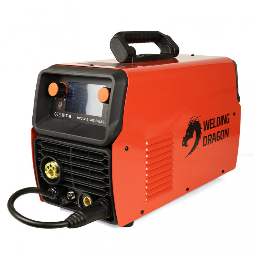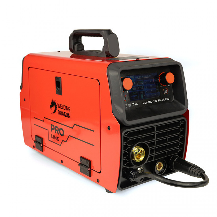 MIG-200P LCD - це професійний зварювальний інвертор TM Welding Dragon, який поєднує в одному корпусі обладнання відразу для трьох видів зварювання: напівавтоматичного в середовищі захисного газу (MIG/MAG), аргонодугового з контактним підпалом дуги (Lift TIG) і ручного дугового (MMA) на постійному струмі. Апарат може працювати як з дротом суцільного перерізу, так і з самозахисним порошковим дротом.