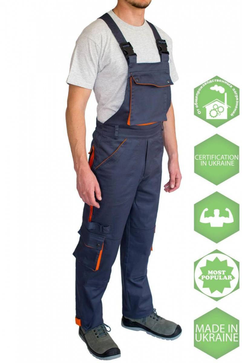 Напівкомбінезон робочий мод. DEXTER, колір сіро-жовтогарячий, нар. 50/3-4 (M)