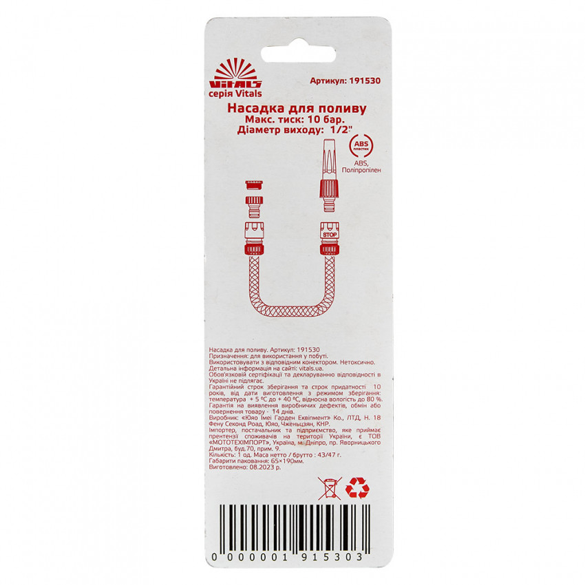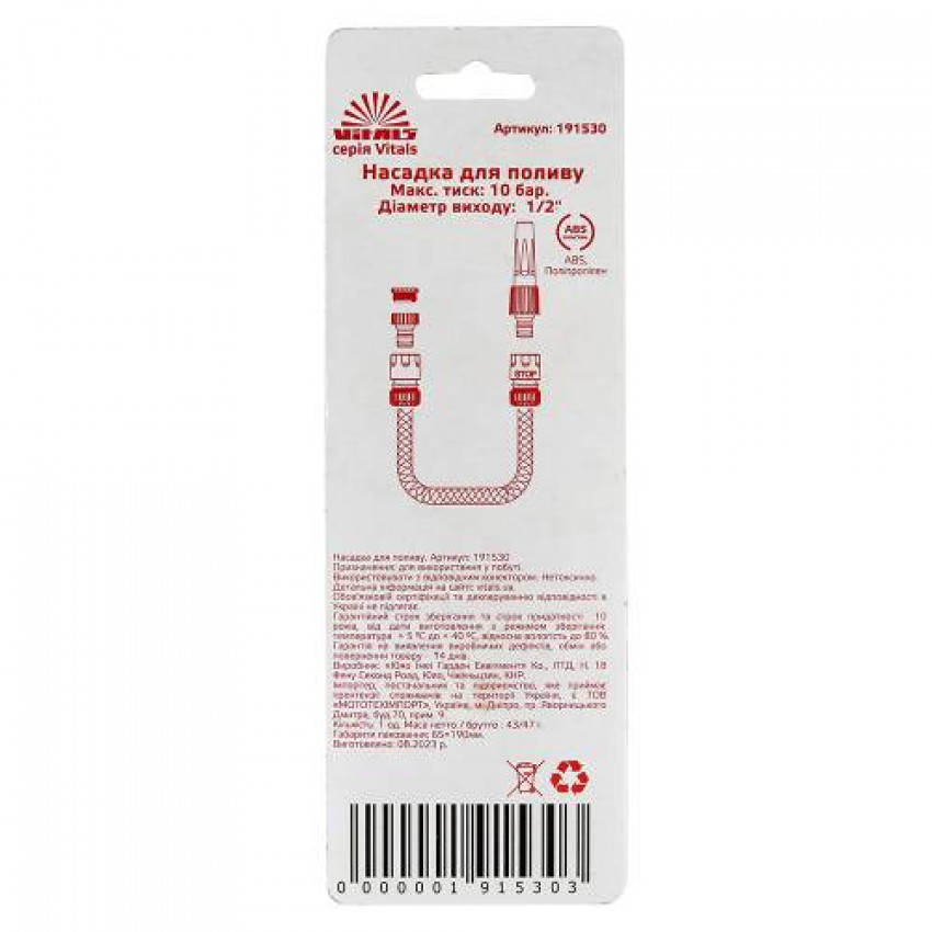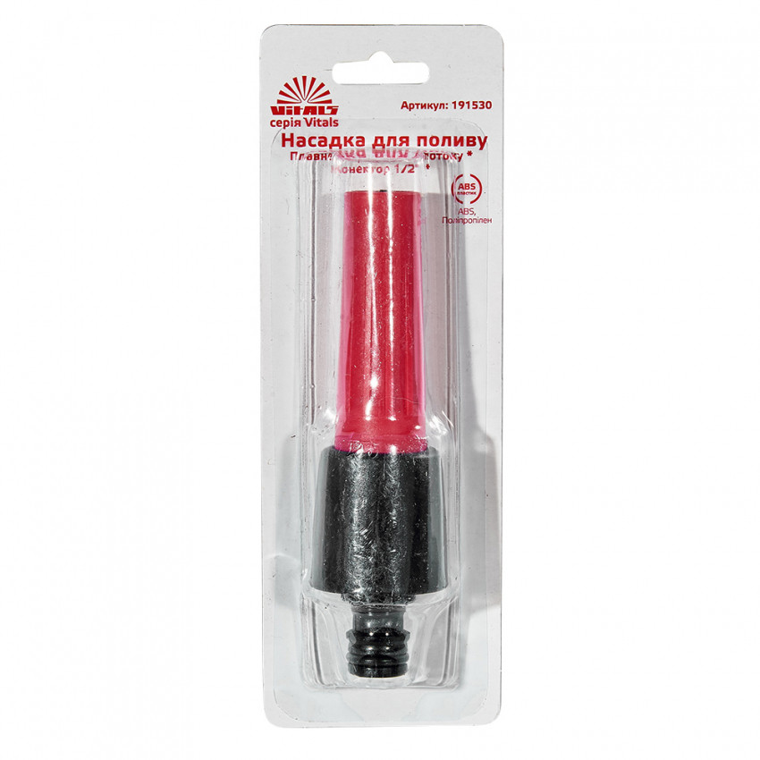 Насадка для поливу з плавним регулюванням потоку води для конектора ½" Vitals застосовується для поливу рослин при підключенні до водопровідного шлангу.