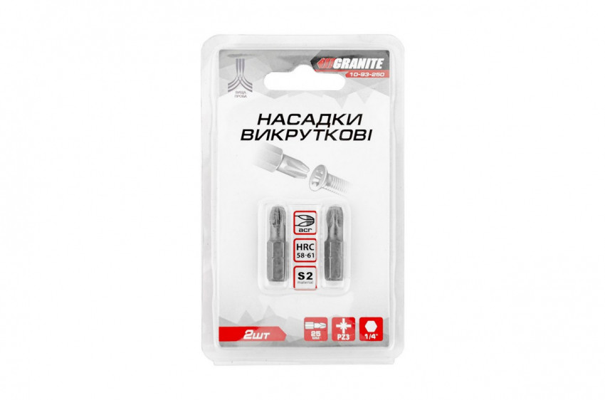 Про товар Насадки викруткові GRANITE РZ3х25 мм S2 2 шт 10-93-250