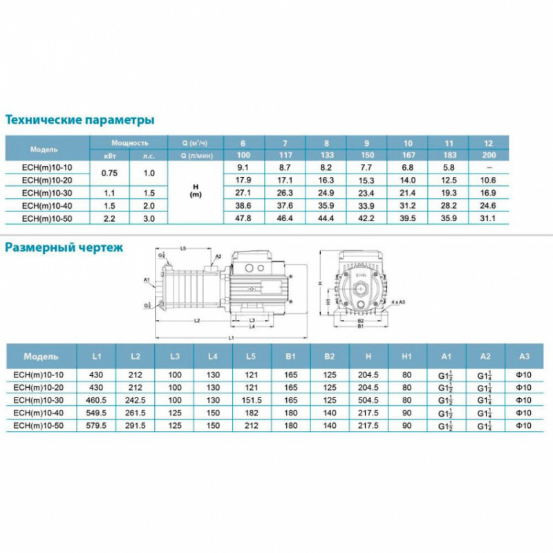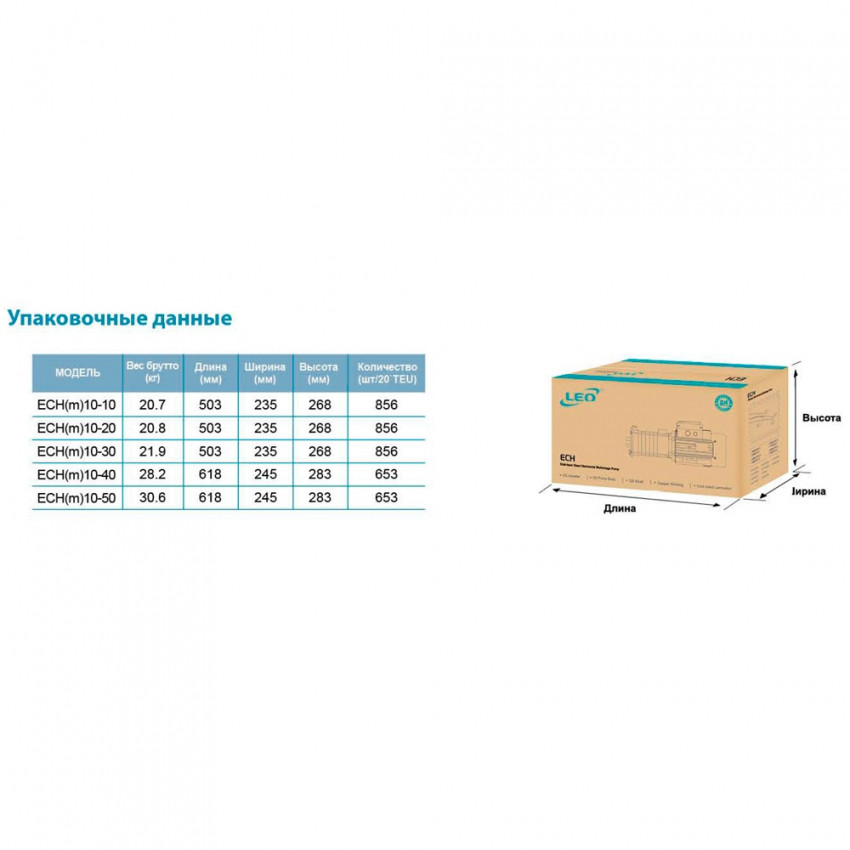 Насос багатоступінчастий горизонтальний 1.5кВт Hmax 40м Qmax 250л/хв нерж LEO 3.0 ECH(m)10-40 (775658) Насоси серії системах центрального кондиціонування та опалення, а також для підвищення тиску. Установка обладнання повинна проводитись у місцях, захищених від атмосферного впливу та вологи. Насосна частина: Корпус: чавун з антикорозійною обробкою/нержавіюча сталь AISI 304; Робоче колесо: нержавіюча сталь AISI 304; Вал двигуна: нержавіюча сталь AISI 304. Електродвигун: Тип двигуна: асинхронний, закритого типу, повітряного охолодження, з вбудованим в обмотку термозахистом; Підшипник: кочення (C