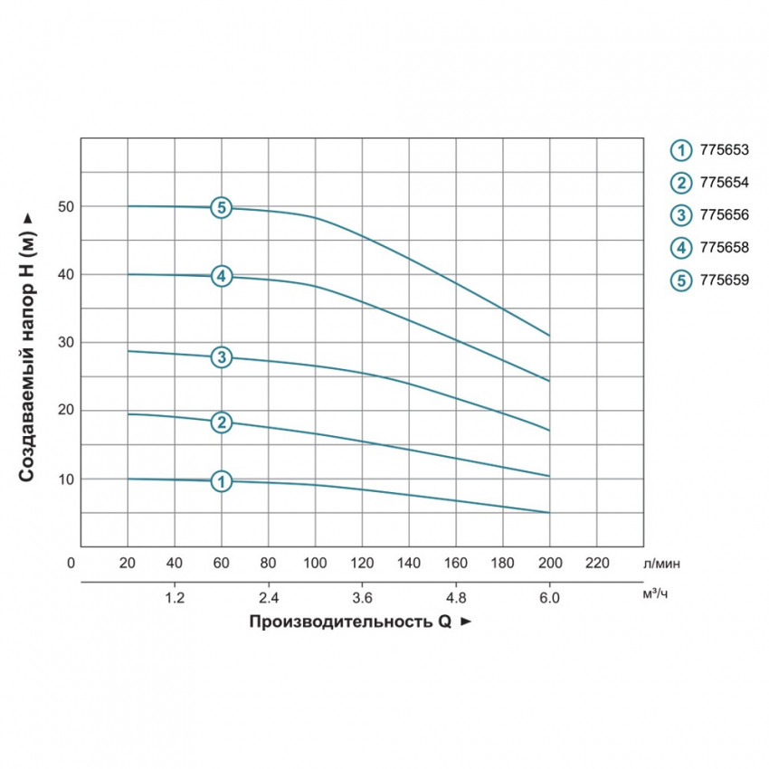 Номінальний напір, м:
