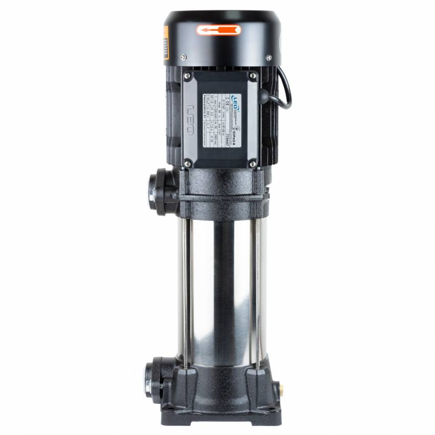 Насос відцентровий багатоступінчастий вертикальний 1.5кВт Hmax 94м Qmax 67л/хв LEO 3.0 (775447) Можуть застосовуватися як допоміжне обладнання для підвищення тиску в промислових цілях, підвищення тиску для сплінкерного та краплинного зрошення теплиць та парників, систем кондиціонування повітря, систем охолодження тощо. Установка обладнання повинна проводитись у місцях, захищених від атмосферного впливу та вологи. Насосна частина: Корпус: нержавіюча сталь AISI 304/чавун з антикорозійною обробкою; Робоче колесо: технополімер; Вал двигуна: нержавіюча сталь AISI 304. Електродвигун: Тип двигуна: асинхронний, закритого типу, повітряного охолодження, з вбудованим в обмотку термозахистом; Підшипник: кочення (C