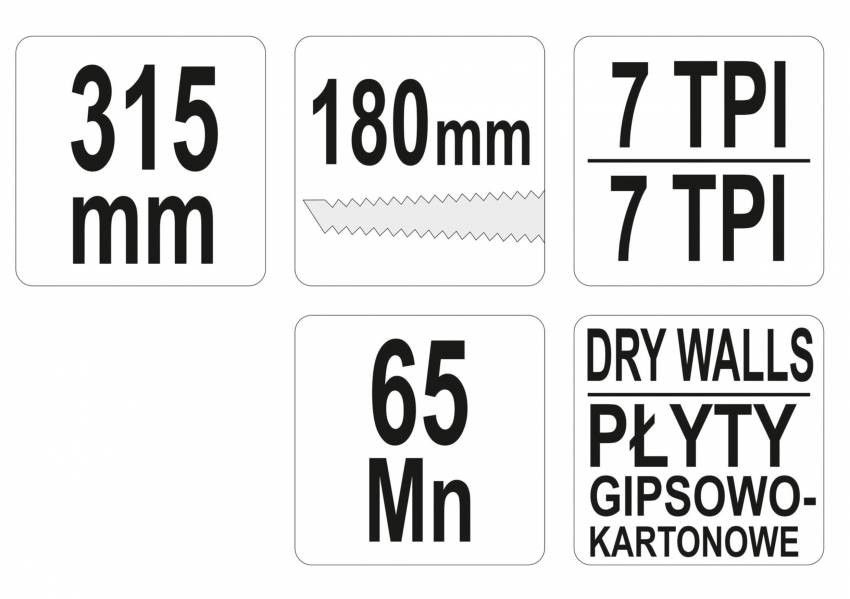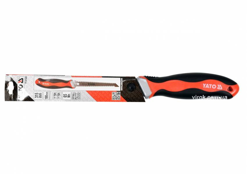 Ножiвка по гіпсокартону YATO : l= 315 мм, полотно l= 180 мм, t= 1,5 мм, 7 зуб./1"