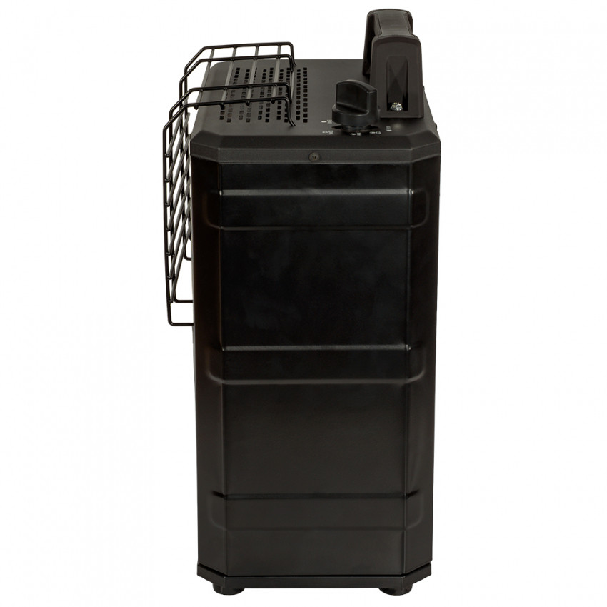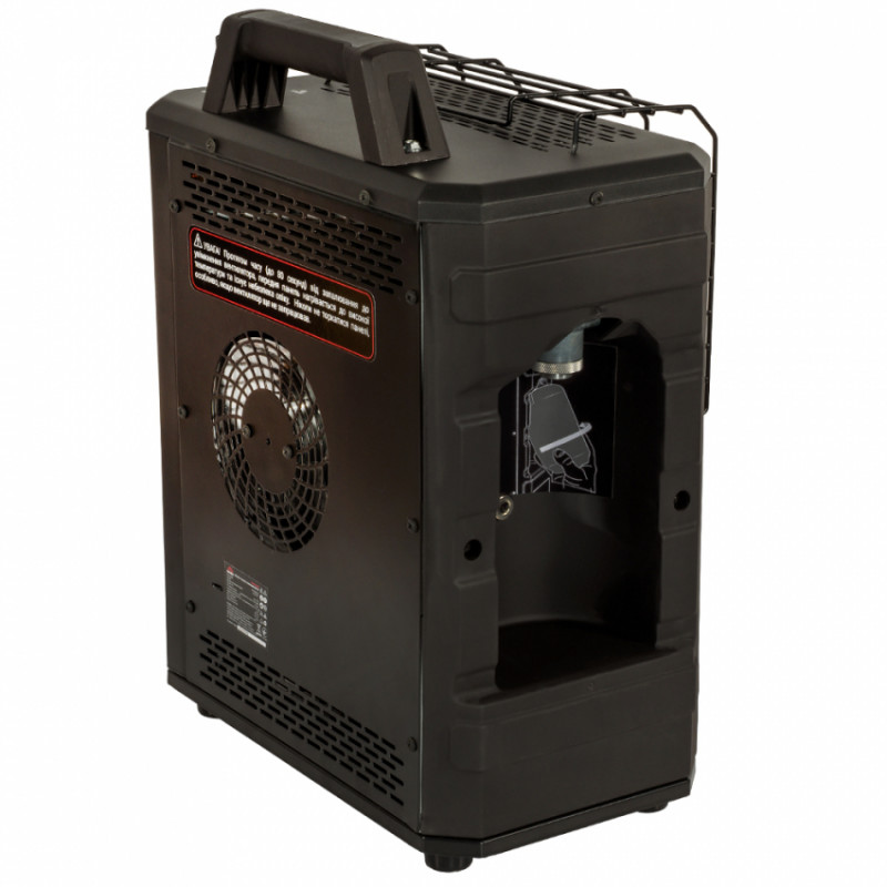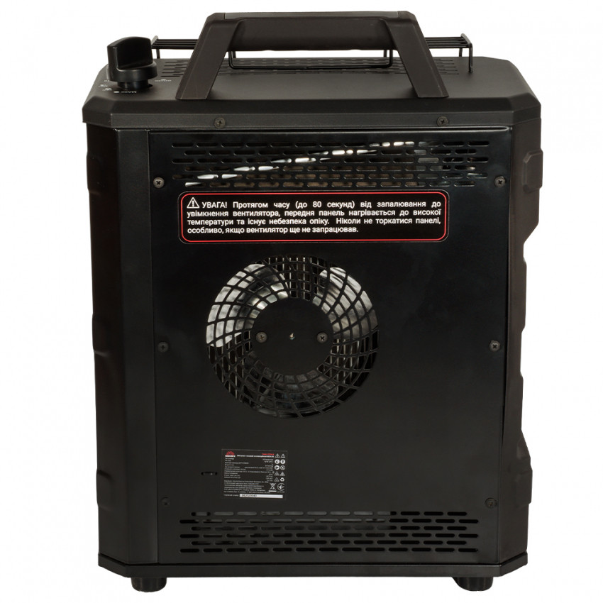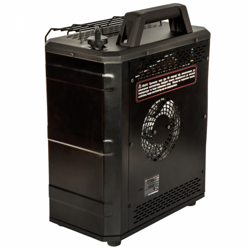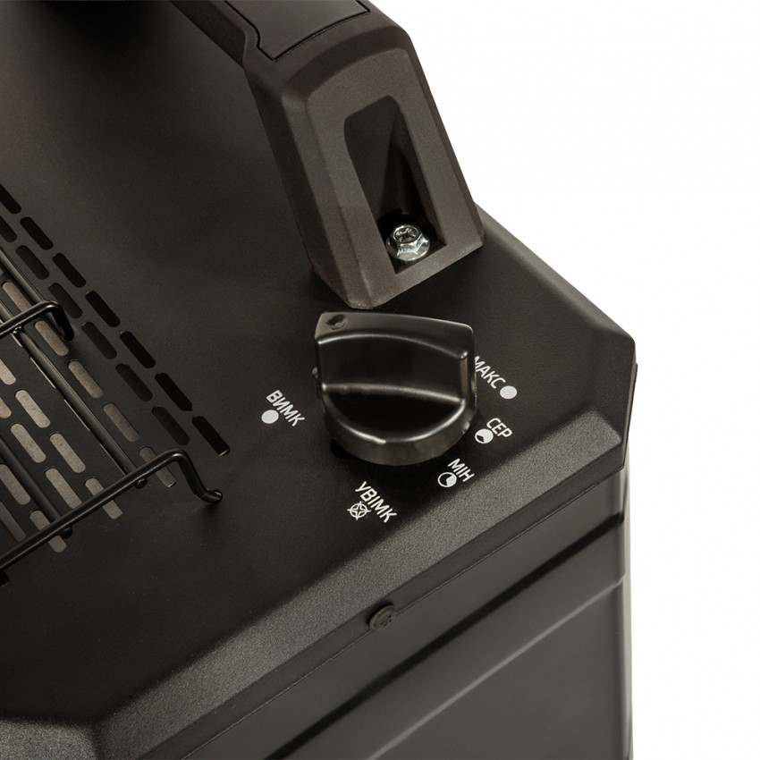 Корпус із міцного металу з антикорозійним покриттям витримує інтенсивне використання. Компактні габарити 339×210×455 мм та маса 4,3 кг роблять пристрій легким для транспортування. Опори забезпечують стійкість, руків’я — зручне перенесення. Вбудований індикатор показує роботу вентилятора. Обігрівач розрахований на тривалу експлуатацію в режимі S3 (періодичний), працює при +5…+40°C. У комплекті: обігрівач, інструкція, паковання.
