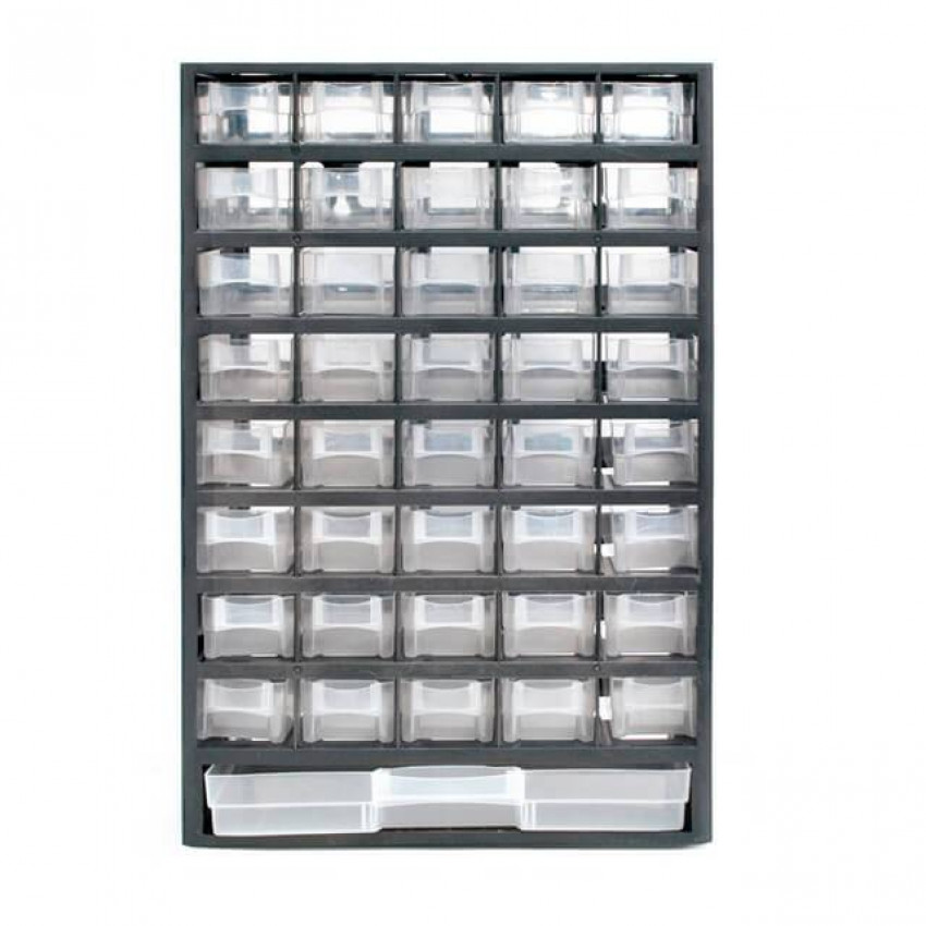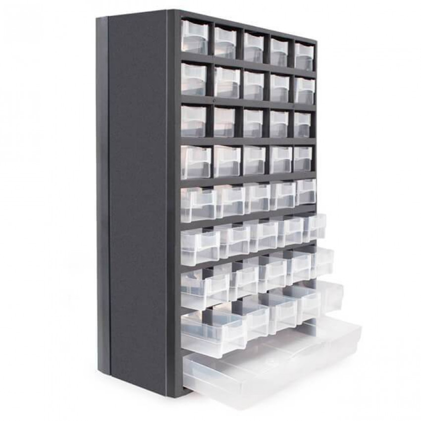 Вертикальний органайзер з безліччю різних відділень допоможе навести лад на робочому місці, вдома або в гаражі. Добре продумана містка конструкція спрощує зберігання та пошук невеликих речей, наприклад: кріпильних елементів, невеликої фурнітури, металовиробів, біжутерії, бісеру, а також негабаритних інструментів.