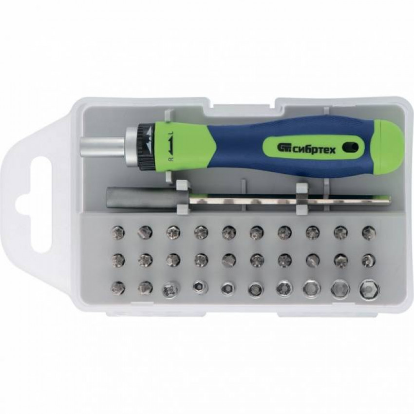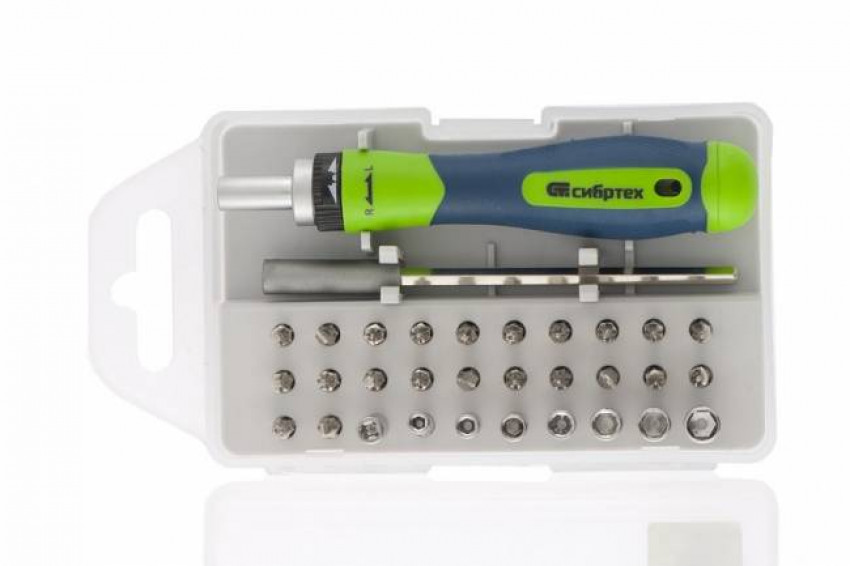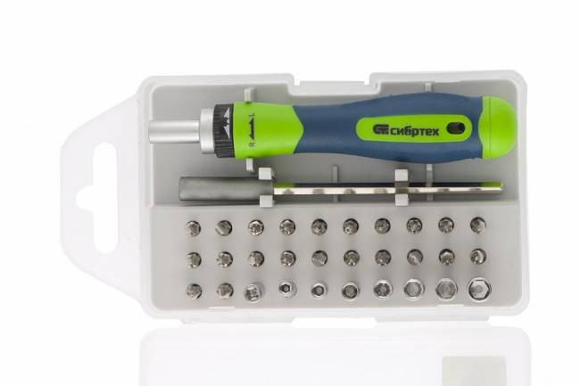 Відгуки Викрутка реверсивна для точних робіт з набором біт та торцевих головок, 32 предмети, CrV Сибртех