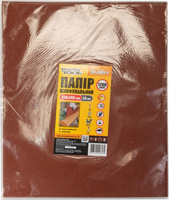 Характеристики Папір шліфувальний водостійкий MASTERTOOL Р1200 230х280 мм 20 шт 08-2682-Р