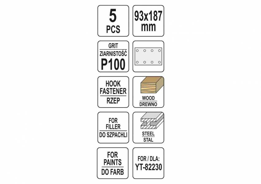 Папір шліфувальний з липучкою YATO: 93 х 187 мм, Р100, до YT-82230, 5 шт