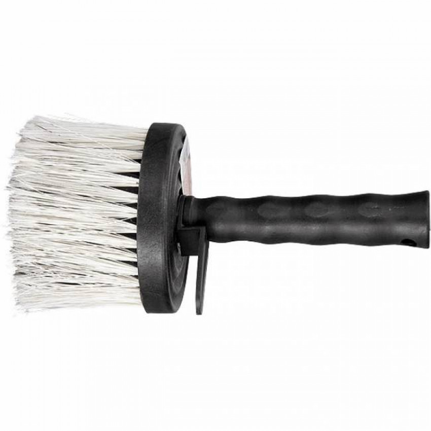 Ворс пензля – штучна щетина, розщеплена на кінцях. Щетина надійно впресована в основу. Ручка та підставка кисті виготовлені із пластмаси, є порожнина для кріплення телескопічного стрижня або живця, що дозволяє працювати у важкодоступних місцях. Пензлик використовується при роботі з водно-дисперсійними фарбами, нанесенні клейових сумішей, ґрунтуванні поверхонь.