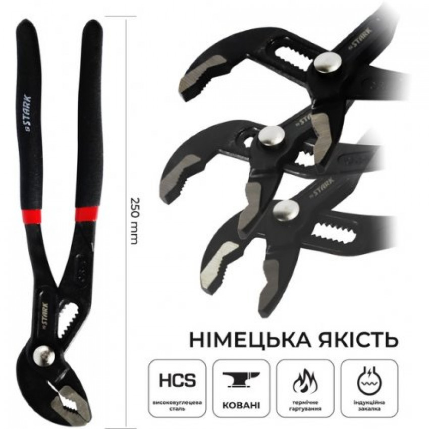 Відгуки Переставні кліщі рамкові Stark 250 мм із кнопкою фіксації