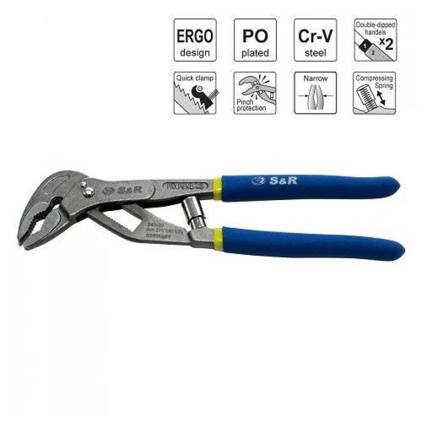 Характеристики Переставні кліщі S & R 240x30 мм швидкозажимні