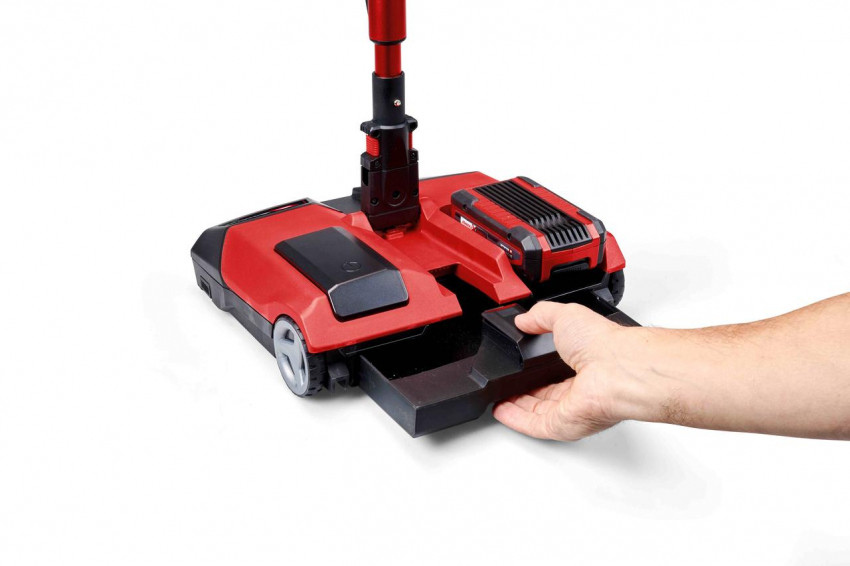 Акумуляторний підмітальний пристрій Einhell TE-FS 18 Li-Solo — ідеальний помічник для проміжних завдань прибирання. Будучи членом сімейства Power X-Change, пристрій можна поєднувати з усіма акумуляторами та зарядними пристроями в системі. Завдяки системі знімних акумуляторів очищувач пропонує необмежений час роботи без проводу: якщо акумулятор розряджений, просто вставте наступний та продовжуйте прибирання. Завдяки гнучкому поворотному з’єднанню вузькі місця можна легко очистити, наприклад, між меблями або під робочими столами. Навіть підмітати різні предмети не становить проблеми. Прогумовані колеса допомагають маневрувати. Компактна та легка конструкція пристрою разом із регульованою телескопічною ручкою з м’якою накладкою забезпечує невтомне та ергономічне підмітання для кожного користувача. Знімна щітка шириною 250 мм оснащена високоякісною щетиною, яка може очищати всі тверді підлоги та килими від сухого бруду, такого як пил, стружки або крихти, за допомогою вбудованої очисної губки. Бічна щітка додатково гарантує, що підмітання можна виконувати на твердих підлогах близько до краю. Пил і бруд потрапляють в контейнер для збору 400 мл, який можна повністю вийняти для очищення. Вбудоване світлодіодне освітлення також дозволяє очищати темні ділянки. Для зручності зберігання акумуляторний підмітальний пристрій оснащений функцією автономного стояння. Акумуляторний підмітально-прибиральний пристрій TE-FS 18 Li постачається з трьома бічними щітками та інструментом для очищення валика щітки. Акумулятор і зарядний пристрій не входять в комплект поставки.
