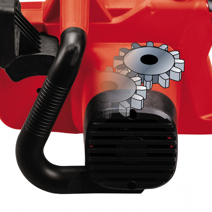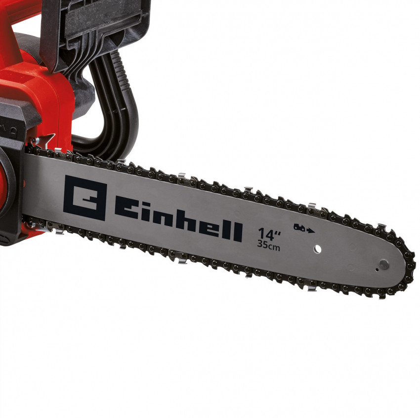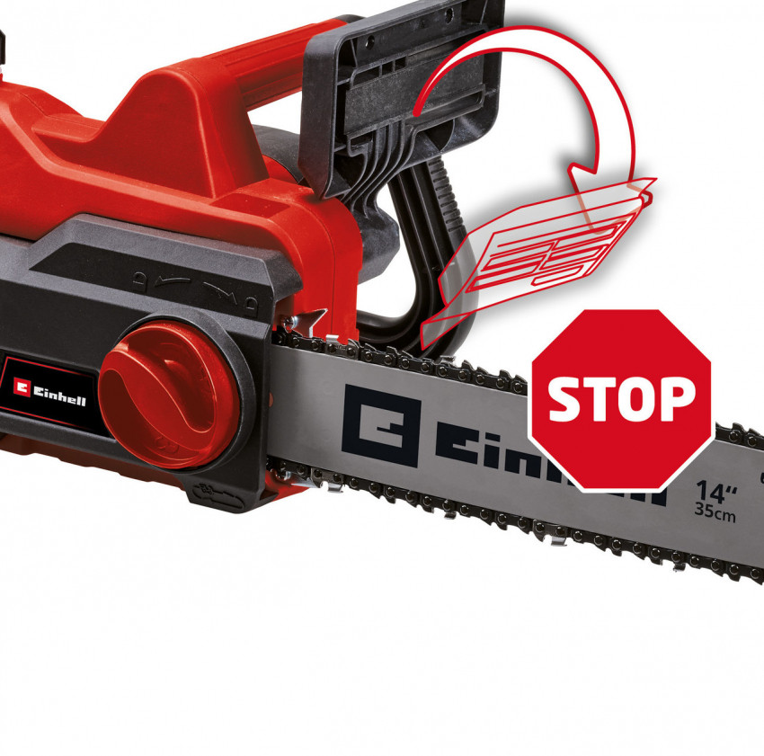 Електрична ланцюгова пила Einhell GC-EC 1935 є зручним, ефективним інструментом і практичним помічником для розпилювання дров, проріджування кущів і вирубки невеликих дерев. Двигун потужністю 1900 Вт, якісні шина довжиною 350 мм і ланцюг OREGON забезпечують хорошу продуктивність різання. Ланцюг може бути натягнутий і змінений без використання інструментів. Для оптимальної передачі потужності і тривалого терміну служби, пила GC-EC 1935 має високоякісний, міцний металевий редуктор. Захист від віддачі з миттєвим механічним гальмом ланцюга забезпечує високу безпеку при експлуатації. Ця ланцюгова пила поставляється з автоматичною системою змащення ланцюга, а масляний бак має великий отвір, що дозволяє легко заливати мастило. Велике оглядові вікно дозволяє легко перевірити, скільки масла масляного баку автоматичної системи змащення ланцюга. Для забезпечення безпеки в разі зістрибання ланцюга з шини пила має уловлювач ланцюга. Надійні кігті зупинки забезпечують безпечну роботу з вирубки та різання на задану довжину, а також можуть бути використані в якості точки опори. Кабельний затискач для кріплення кабелю дозволяє зняти натяжіння та захищає кабель живлення.