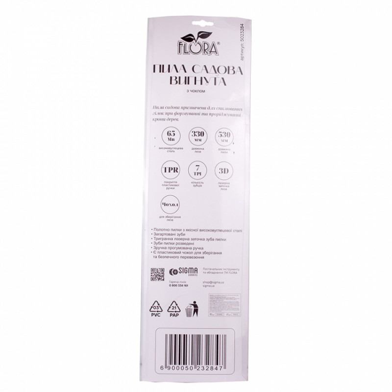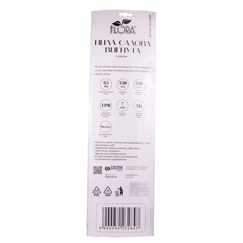 Пила садова вигнута 330мм 7TPI з чохлом FLORA (5023284)