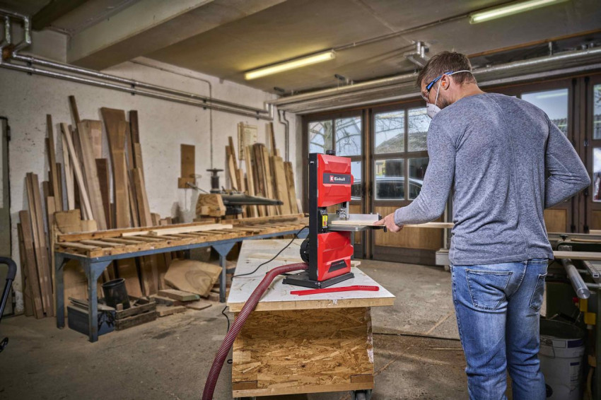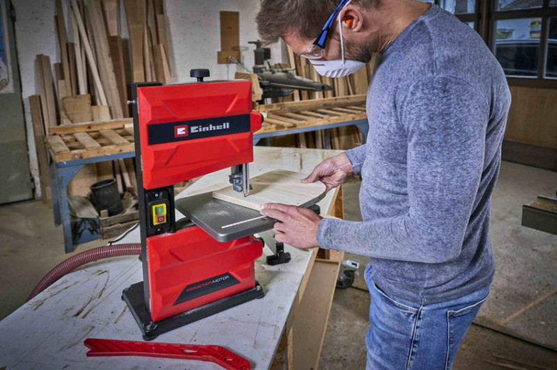 Стрічкова пила Einhell TC-SB 200 + є ідеальним базовим обладнанням для амбітних ентузіастів DIY. Стаціонарна, але гнучка стрічкова пила вражає своєю адаптивністю. Незалежно від того, чи це прямі розпили, вигнуті розрізи, косі розрізи або розпилювання поперек волокна, стрічкова пила пропонує широкий спектр застосувань. Завдяки двигуну потужністю 300 Вт деревину та подібні до неї матеріали можна різати надзвичайно точно та без зусиль. Ще однією перевагою стрічкової пилки є вузький розпил, який захищає матеріал і економить енергію. Великий і міцний робочий стіл, виготовлений зі сталі з порошковим покриттям, пропонує велику робочу площу і тому також підходить для заготовок середнього розміру. Завдяки автоматичномо вбудованому захисту від перезапуску після переривання живлення запобігає, забезпечується безпека користувача. Висота зрізу макс. 80 мм при 90° і макс. 45 мм при різах 45°. Пильна стрічка має ширину 7 мм, довжину 1400 мм і рухається зі швидкістю 900 метрів за хвилину. Направляюча стрічкової пилки виготовлена з високоякісного алюмінію, що забезпечує точне різання та довговічність. Пильний стіл можна плавно нахиляти ліворуч на -2° і праворуч на 45°, щоб навіть складні косі різи були успішними. Напрямна планка з двостороннім затиском і направляючими роликами є корисною підтримкою для любителів робити своїми руками для досягнення прямих і точних розрізів. Крім того, стрічку пили можна швидко і без інструментів замінити.