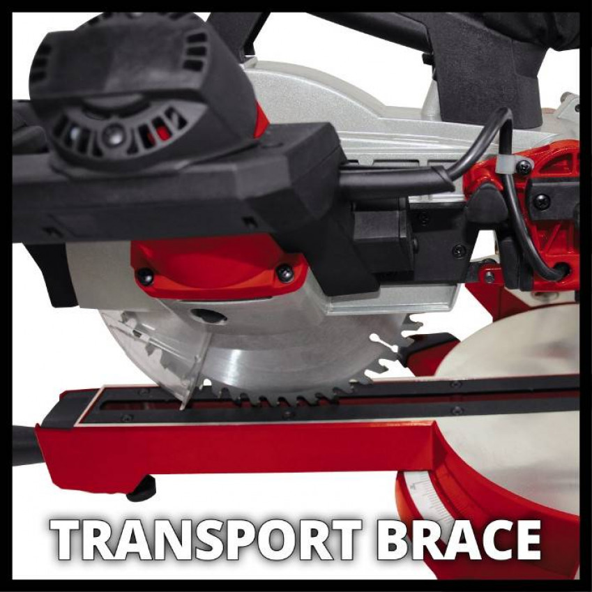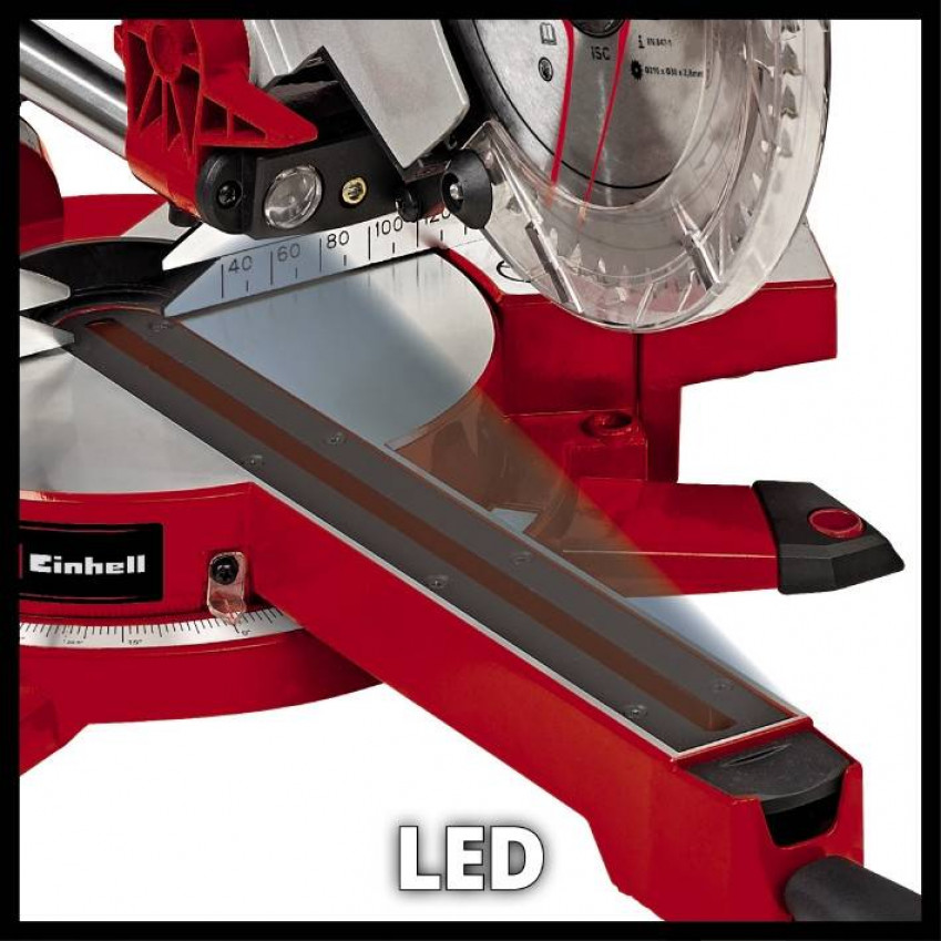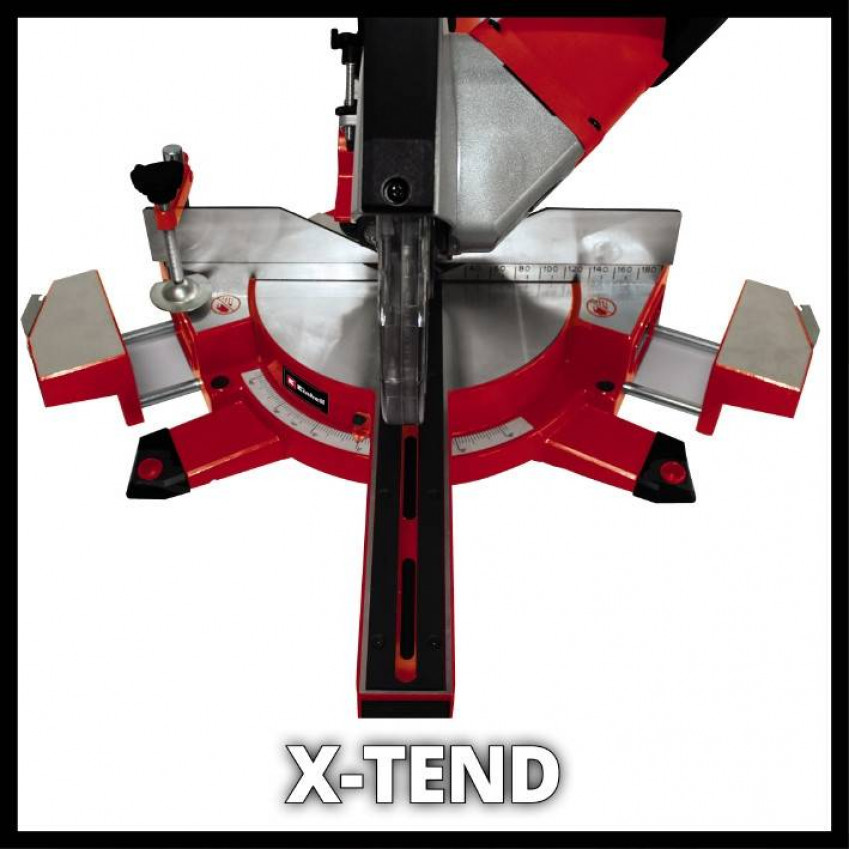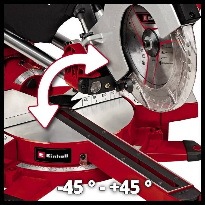 Двостороння торцеві пила з протяжкою Einhell TE-SM 2131 Dual - це потужна пила для різання дерева, ламінованих панелей і пластику. Пильна головка може нахилятися вліво і вправо для забезпечення високої гнучкості в налаштуванні різів з двох сторін. Лазерна лінія від інтегрованого лазера з живленням від мережі дозволяє швидко і точно розрізати заготовку. Високоякісний поворотний стіл торцевої пили TE-SM 2131 Dual має точній механізм регулювання кута для кутових розрізів, який може бути налаштований і зафіксований в різних положеннях. Функція протяжки дозволяє розрізати особливо широкі заготовки. Додаткові розширювальні стійкі X-Tend забезпечують ергономічне управління однією рукою, вони мають затискний пристрій для надійної фіксації заготовки і упор деталі. Вбудований обмежувач дозволяє просто і точно виконувати повторне різання. LED підсвітлення забезпечує оптимальне освітлення заготовки, в тій годину як плавний пуск забезпечує легкий і зручний запуск. Високоякісний пильний диск діаметром 210 мм з твердосплавними карбідними напайками гарантує чисте різання. Мішок для тирси зберігає робоче місце в чистоті. Після роботи можна легко і надійно закріпити кабель живлення на вбудованому утримувачі кабелю. Для легкого та безпечного транспортування передбачена транспортувальна ручка.