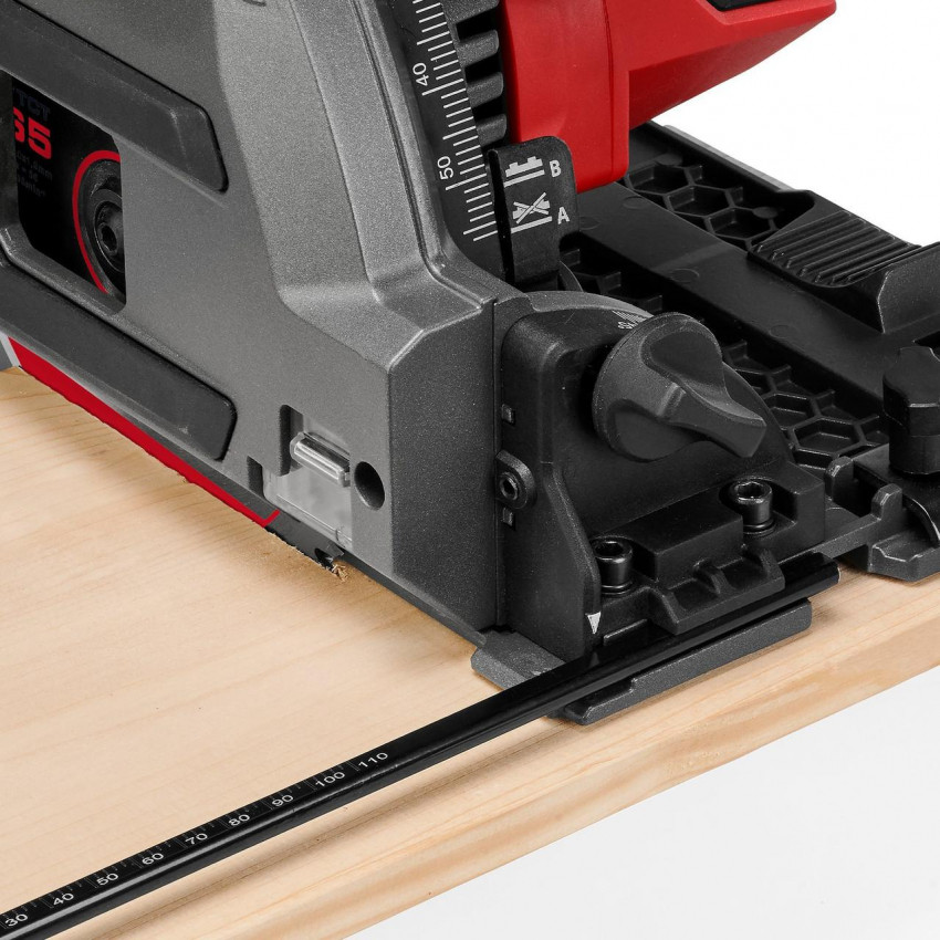 Акумуляторна занурювальна пила Einhell Professional TP-PS 18/165 Li BL - Solo – справжній універсал у майстерні. Чи то дерево, панелі чи пластик: завдяки функції занурення ви можете безпосередньо різати в заготовку зверху. Високоякісне твердосплавне пильне полотно (Ø 165 мм) потужно обробляє матеріали глибиною різання до 56 мм під кутом 90° (без напрямної шини) завдяки акумулятору Power X-Change 18 В. Чисті розрізи також гарантуються в зоні використання поблизу краю. Пристрій живиться від безщіткового двигуна Einhell. Цей безщітковий двигун пропонує більшу потужність і довший час роботи, ніж звичайні двигуни з вугільними щітками. Легка та компактна занурювальна пила оснащена високоякісною алюмінієвою підошвою для розпилювання. У поєднанні з паралельним упором це дозволяє виконувати точні, прямі розрізи. Крім того, зону різання можна спостерігати через оглядове віконце та індикатор лінії різу. Маркер вказує максимальний діапазон занурення. Фіксація шпинделя робить заміну пильного диска особливо легкою. Дискова пилка керується ергономічною основною рукояткою та передньою рукояткою. М'які поверхні також забезпечують роботу без втоми. Глибину різання та кут нахилу можна легко регулювати без інструментів. Безпека роботи забезпечується плавним пуском, гальмом двигуна та захистом від повторного запуску. Вбудоване поворотне підключення для всмоктування завжди підтримує чистоту вашого робочого місця. Крім того, акумуляторна занурювальна пилка сумісна з системою напрямних шин Einhell. У комплект поставки входить один диск для дерева. Пристрій постачається без акумулятора та зарядного пристрою.