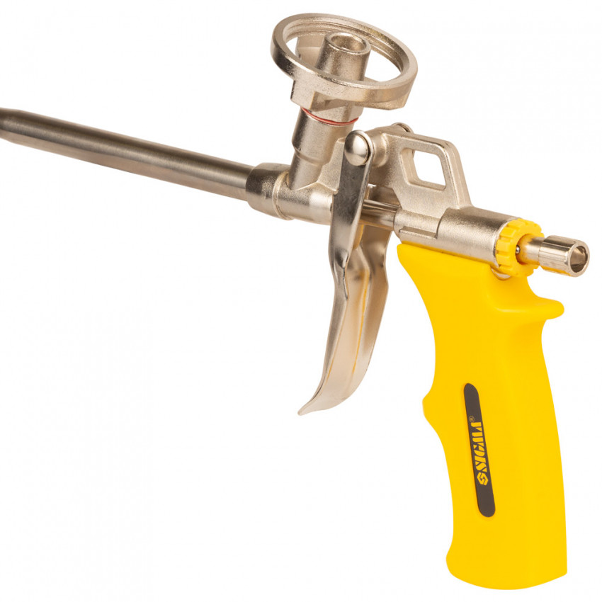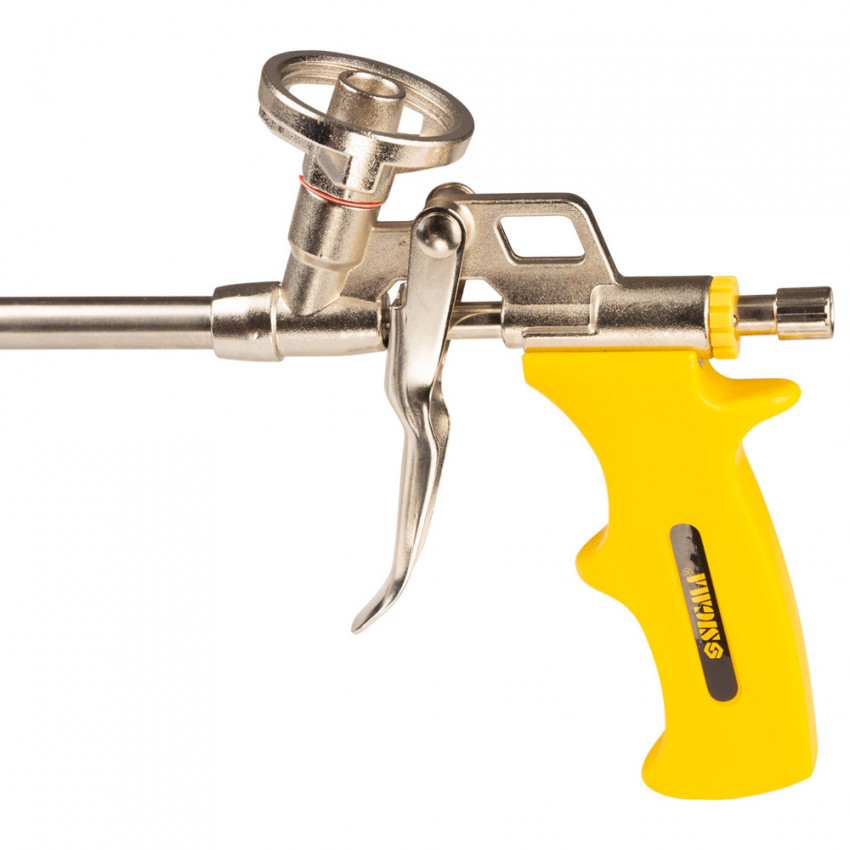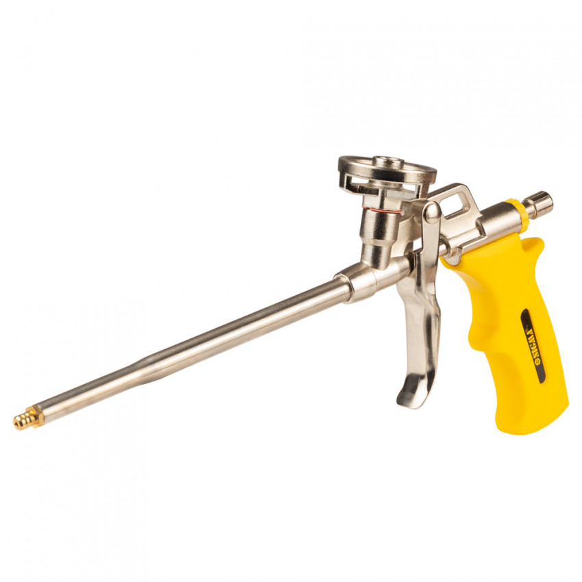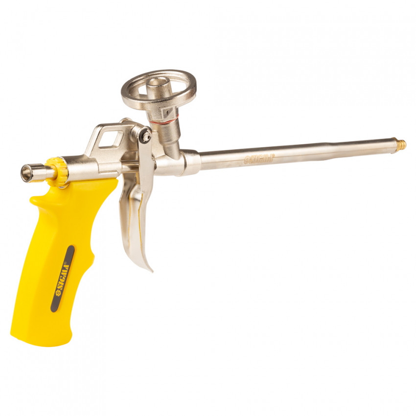 Призначений для робіт з монтажною піною. Використовується при монтажі вікон, дверей та інших будівельних конструкцій для заповнення пустот і надання герметичності. Конструкція пістолета має адаптер для підключення балона з піною, який розташований у верхній частині пістолета.