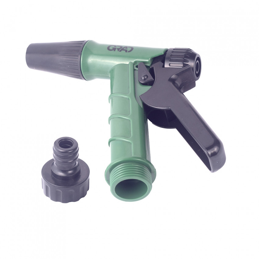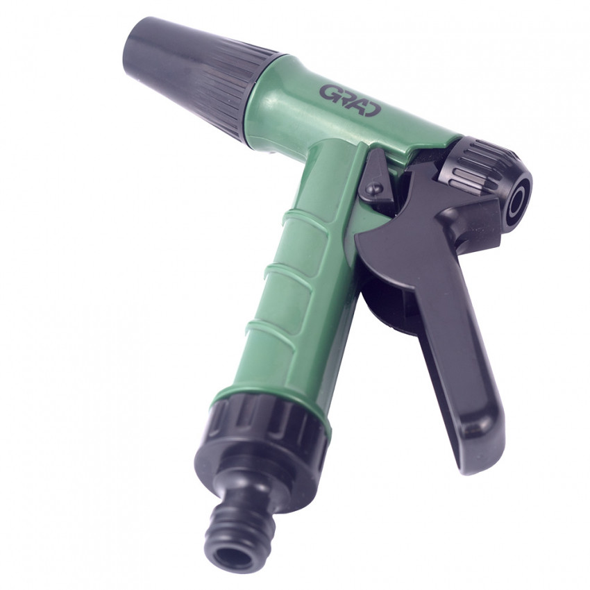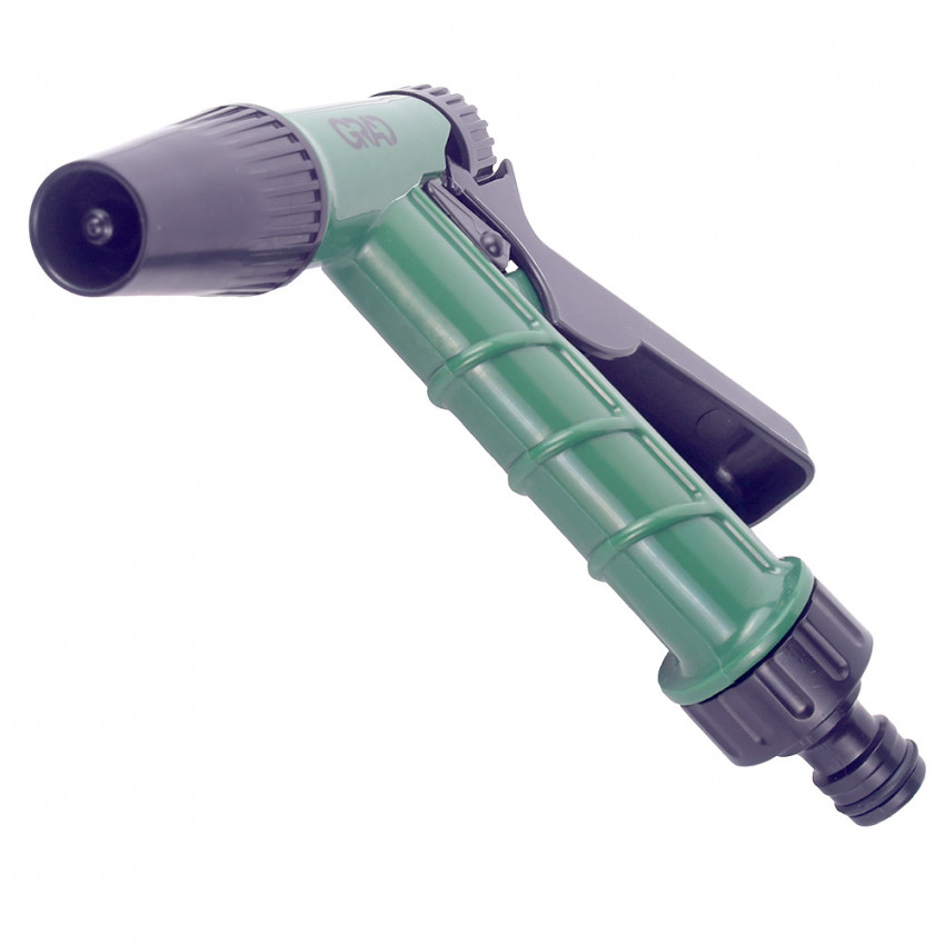 Пістолет-розпилювач є насадкою на поливальний шланг, підключається через швидкоз`ємний конектор. Дає можливість точно регулювати напрямок і ширину вихідного струменя під час поливу. Дає змогу не тільки полити грядки, дерева і газони, а й помити машину, садові доріжки, меблі та садові інструменти.