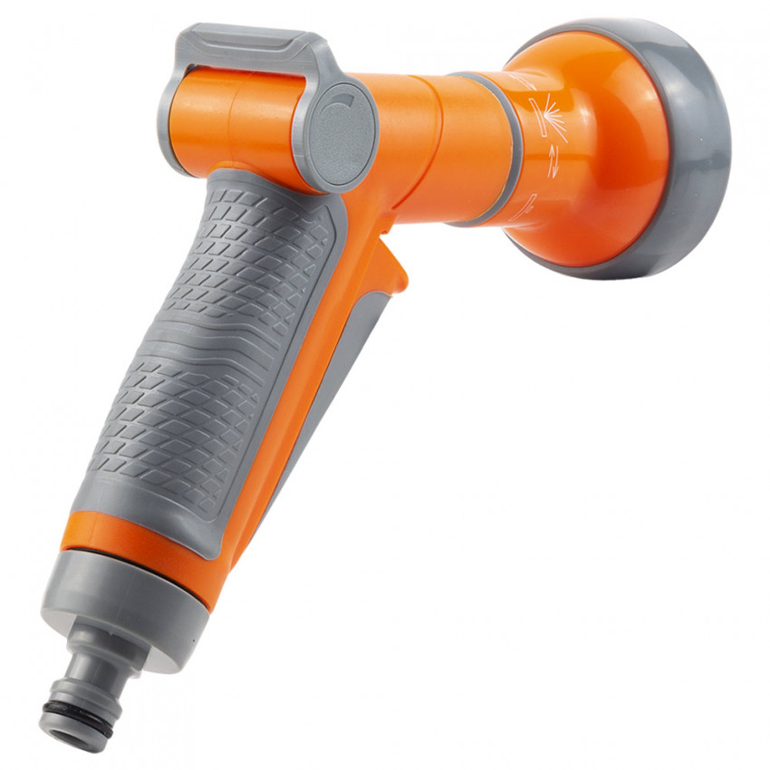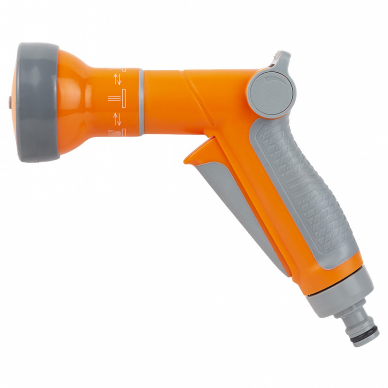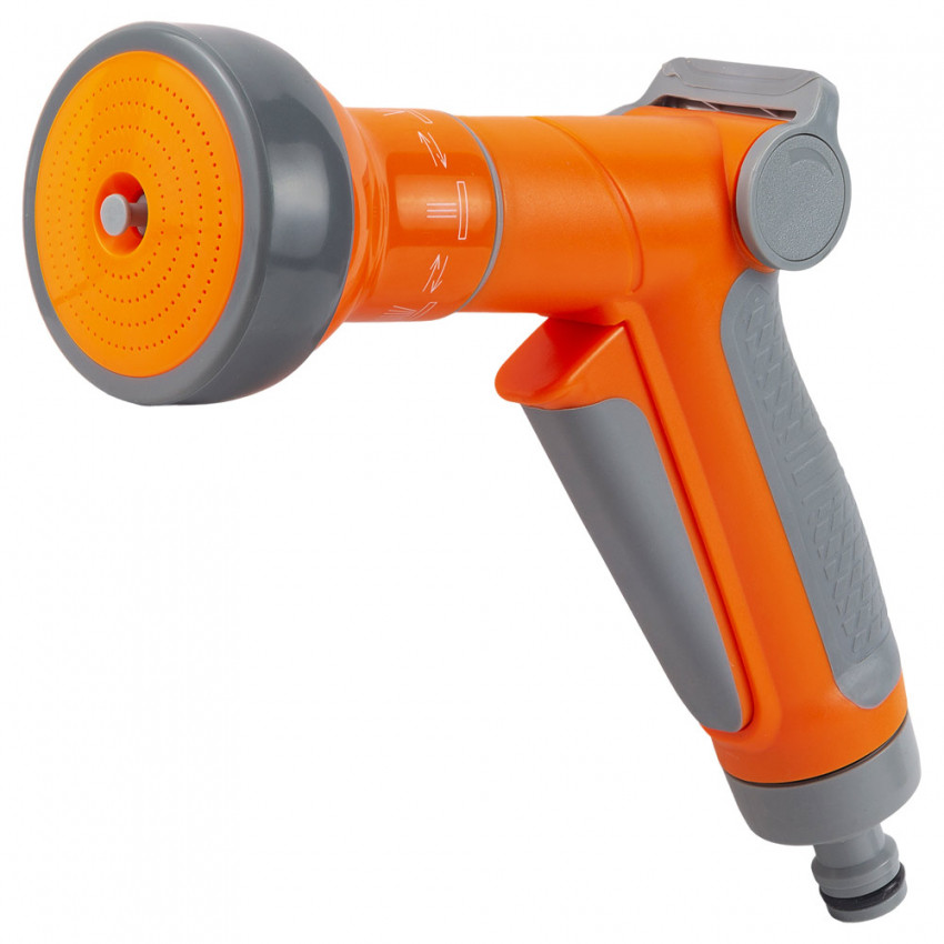 Пістолет-розпилювач є насадкою на поливальний шланг, підключається через швидкоз`ємний конектор. Дає можливість точно регулювати напрямок і ширину вихідного струменя під час поливу.