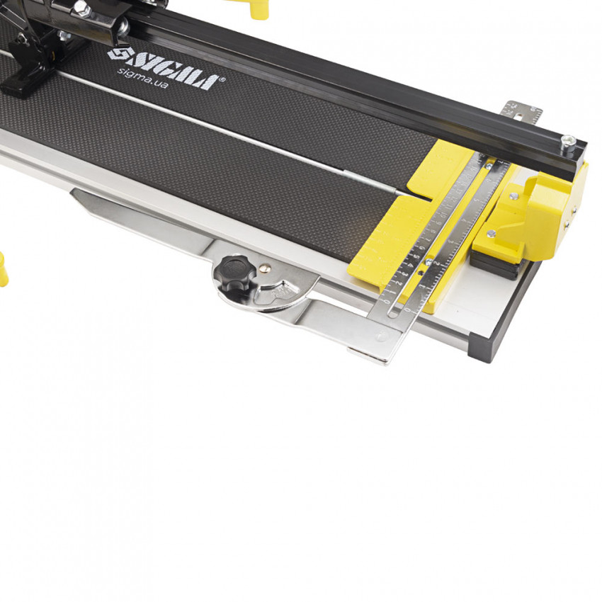 Плиткоріз ручний монорейковий на підшипниках 800мм (лазер, бічні упори) SIGMA (8223551) це компактний інструмент, призначений для прямого та діагонального різу кахельної та керамічної плитки у побутових умовах.