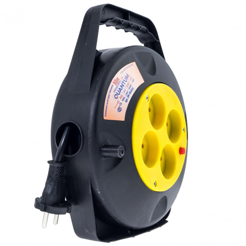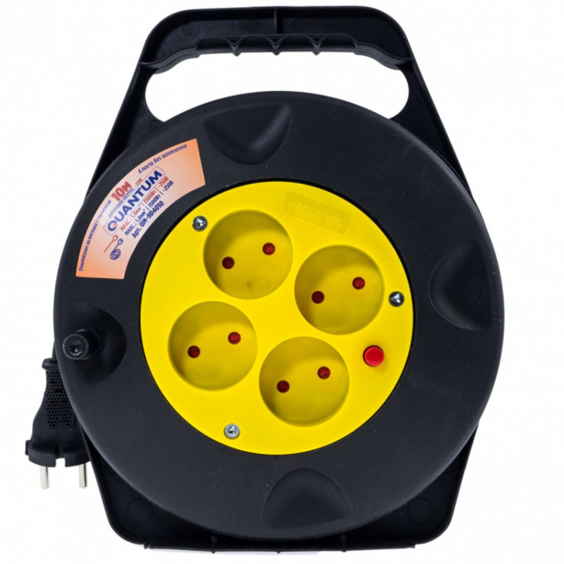 Про товар Подовжувач на котушці Quantum з термореле 4 поста без зазем 10м, 2*1.0, 10А, 230B, 2500Вт, 1шт/уп